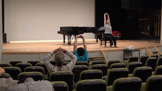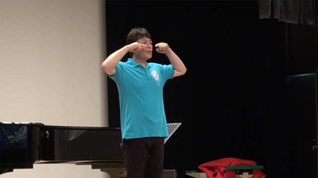 発声練習も半年ぶりの柳田先生。ハミングは日頃会話では出さない声で…