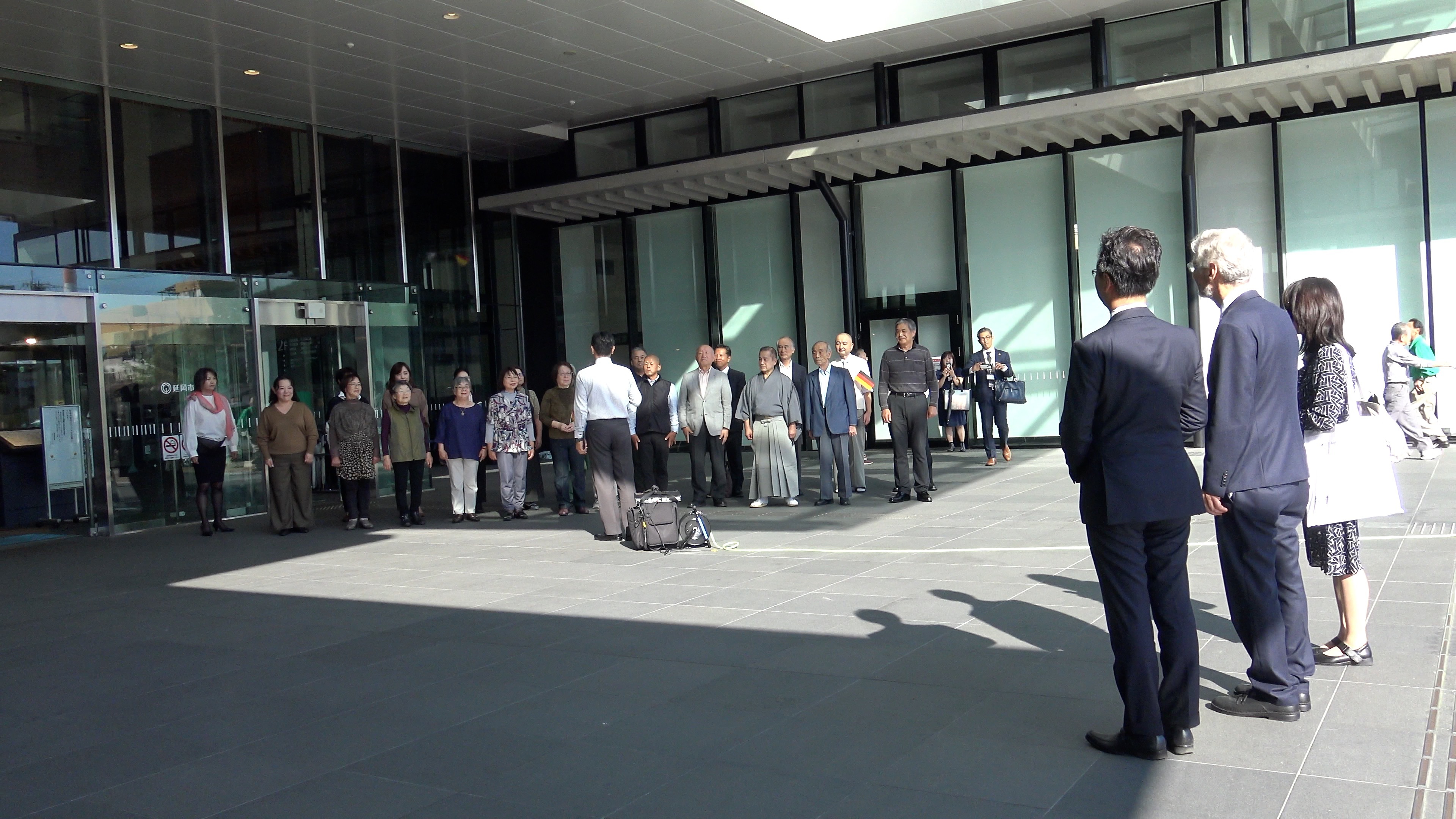 今年初めて歌うメンバーや、たまたま市役所に来ていたOBも交えた合唱となりました。