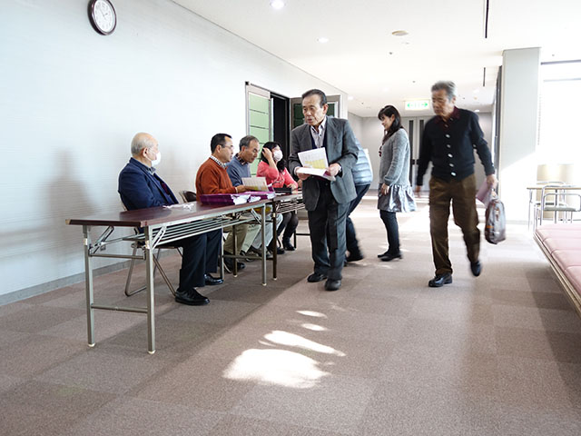 集合は小ホール。受付で本日の舞台の配列確認と自分の名前にチェック、マラソンのエントリーに似た作業で出欠確認です。