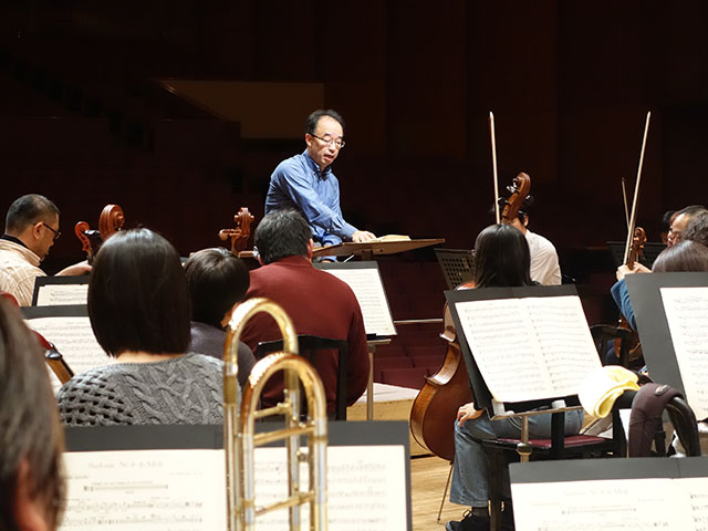 大ホールに集合し、ゲネプロ。今年舞台が初めての新入会の団員はこの日はじめてオーケストラの音に接することになります。ベテランの方も積み重ねた経験の上に違った緊張…