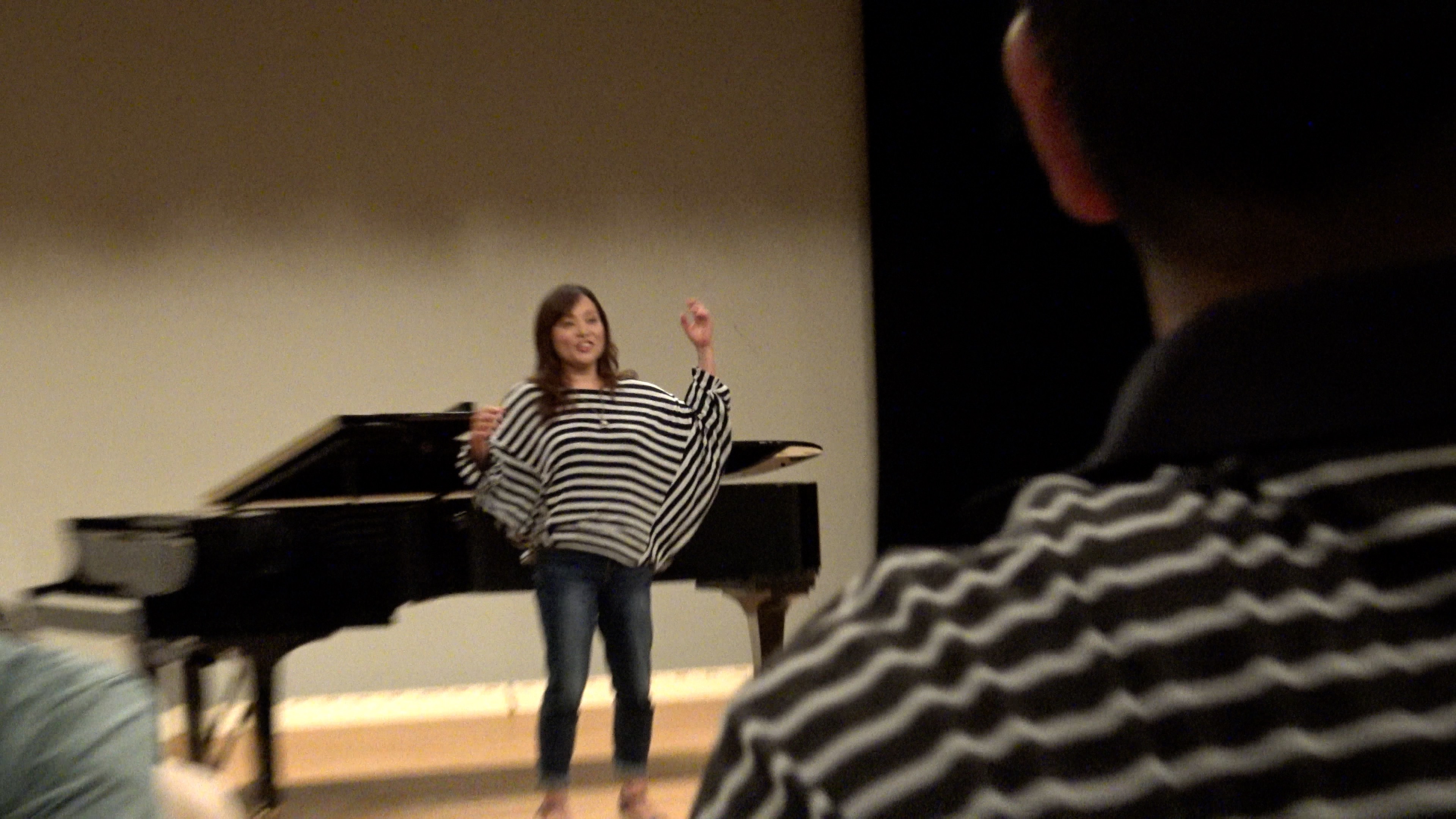後藤先生の柔軟体操のあと、パート別に別れて練習。