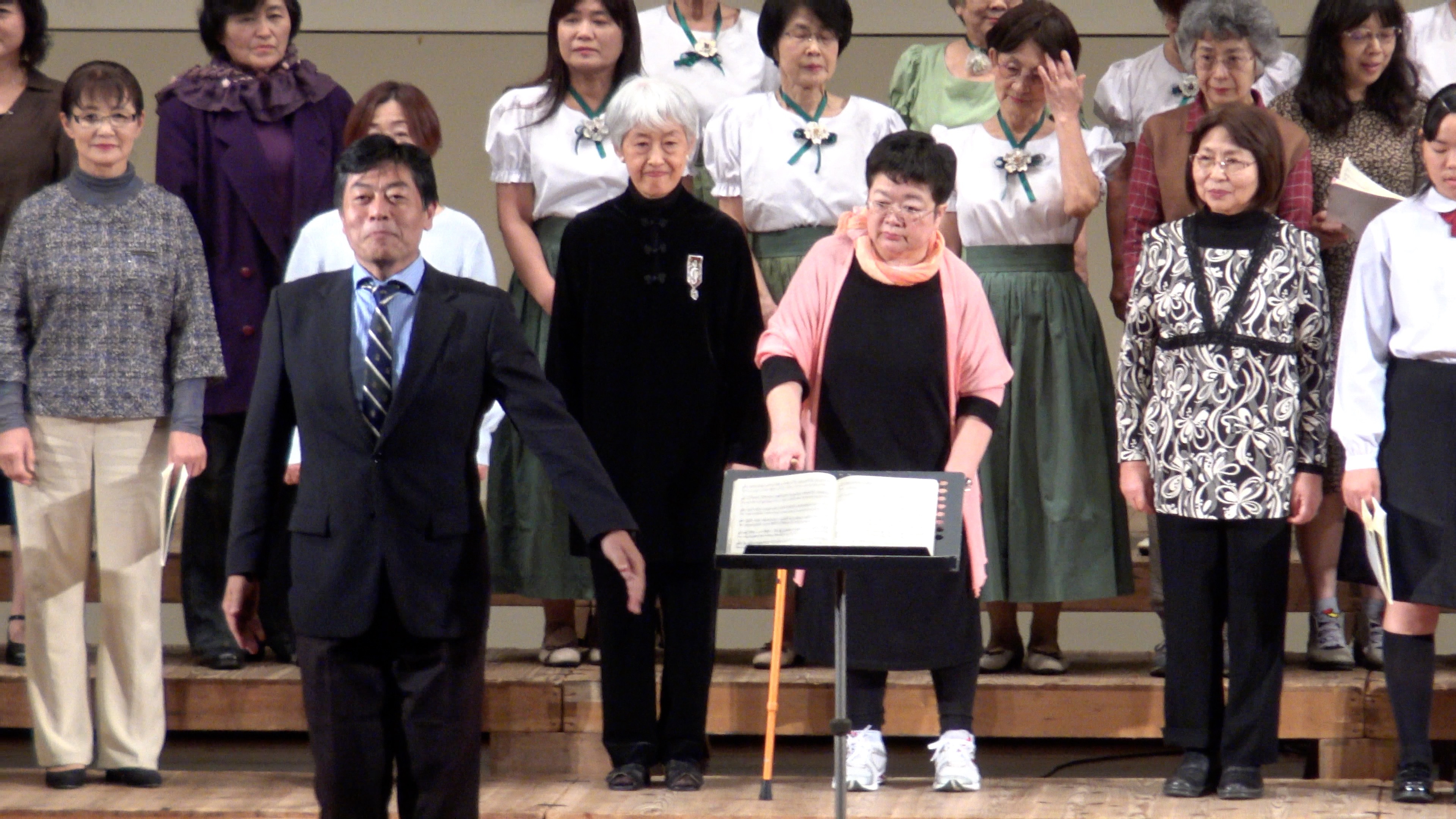 合唱団はいつものメンバーですが、服装はこの日の音楽祭で出演していた衣装そのままのメンバーも…