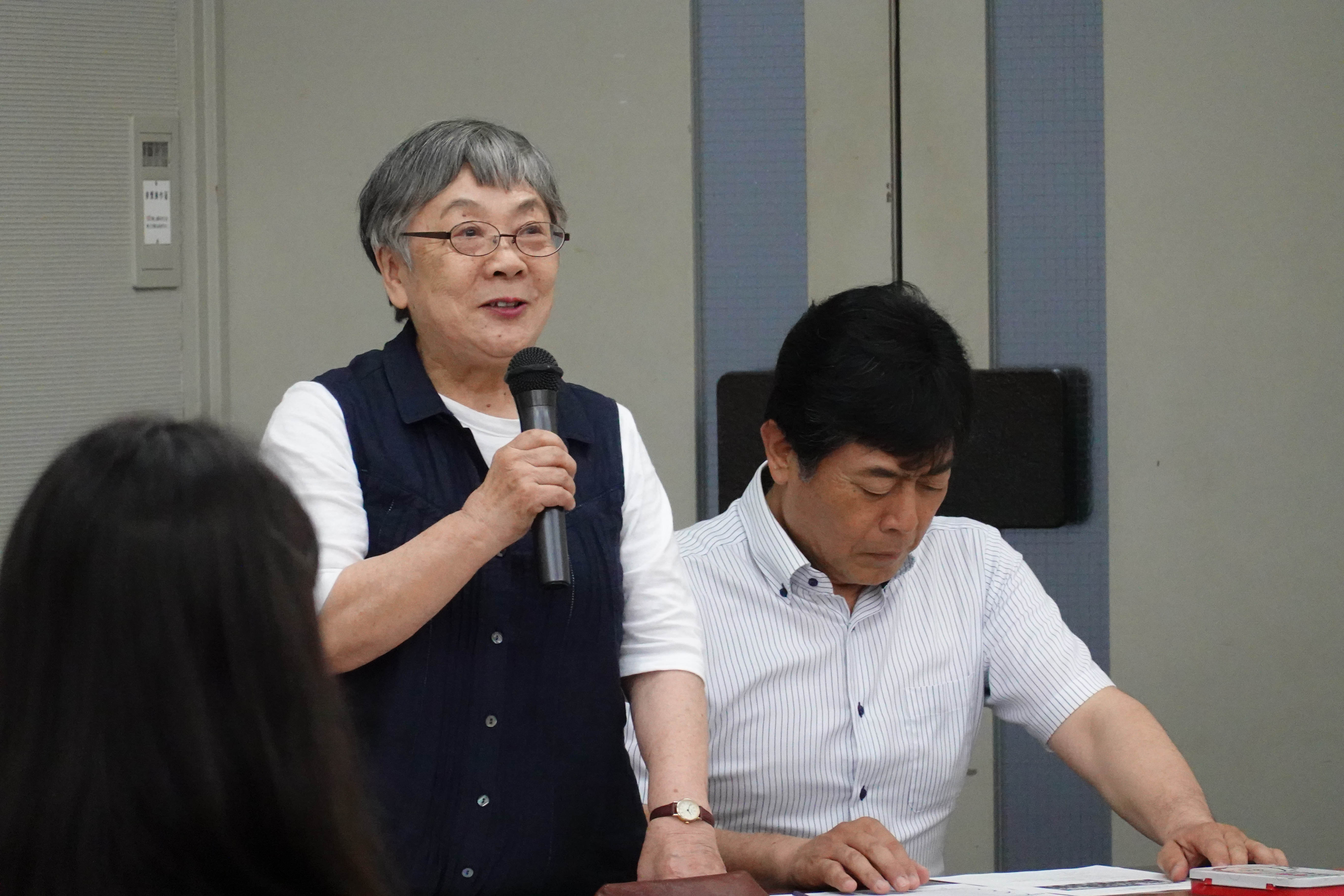 今村愛子会長からのごあいさつ、午前中には今年一旦閉館して建て替えが始まる野口記念館の式典に出席した際に思い出した、記念館で皆と語り合った思い出「いつか延岡市で「第九」演奏会を…」という願いが叶えられて長年歌ってきたが、来年の国民文化祭開催時に「第九」が35周年記念となることの重要性、そして今後は若い団員とともに続けて行きたいという決意が語られました。