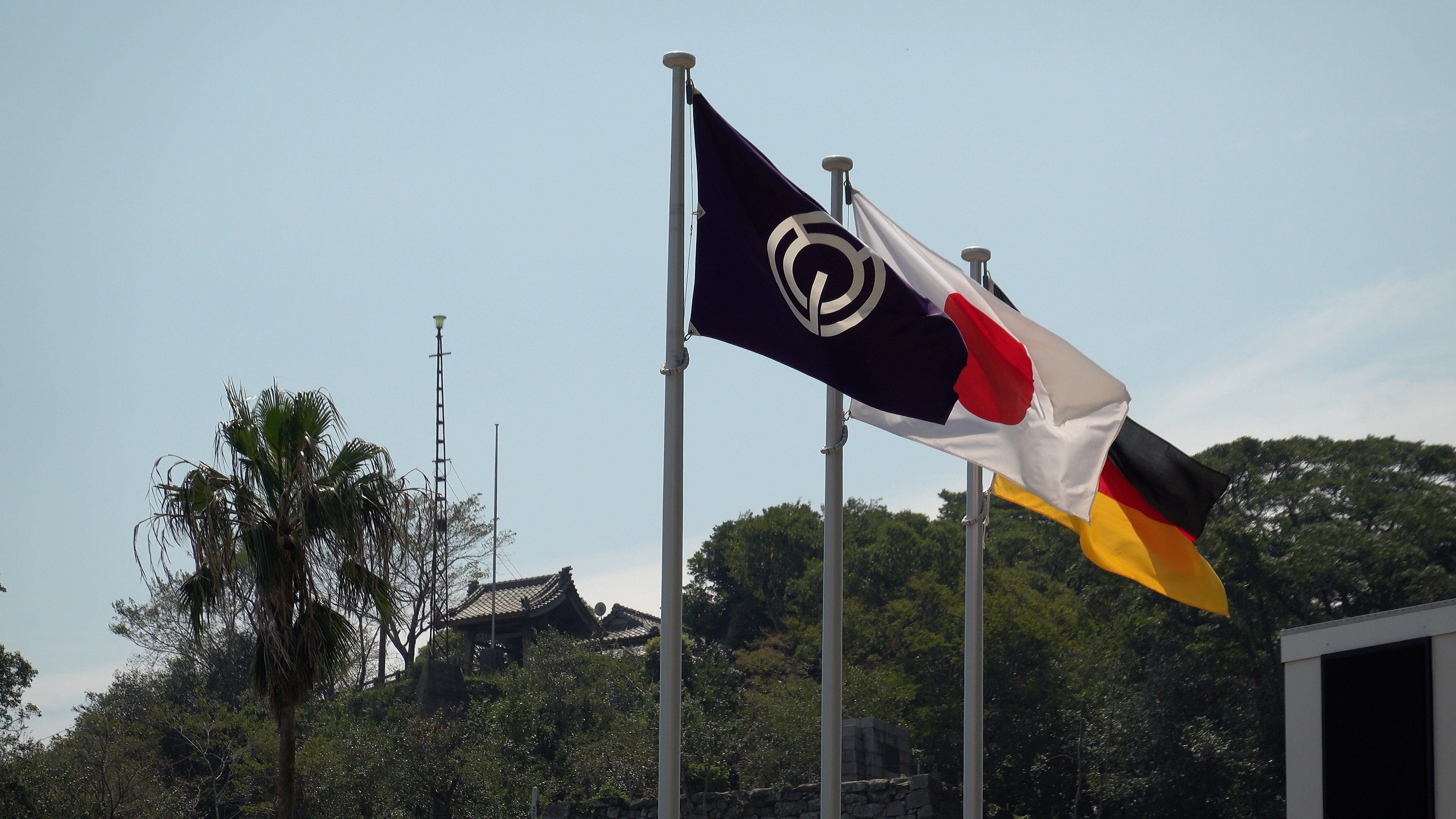 延岡市役所には国旗と市旗に加えて、ドイツの国旗が掲揚されています。