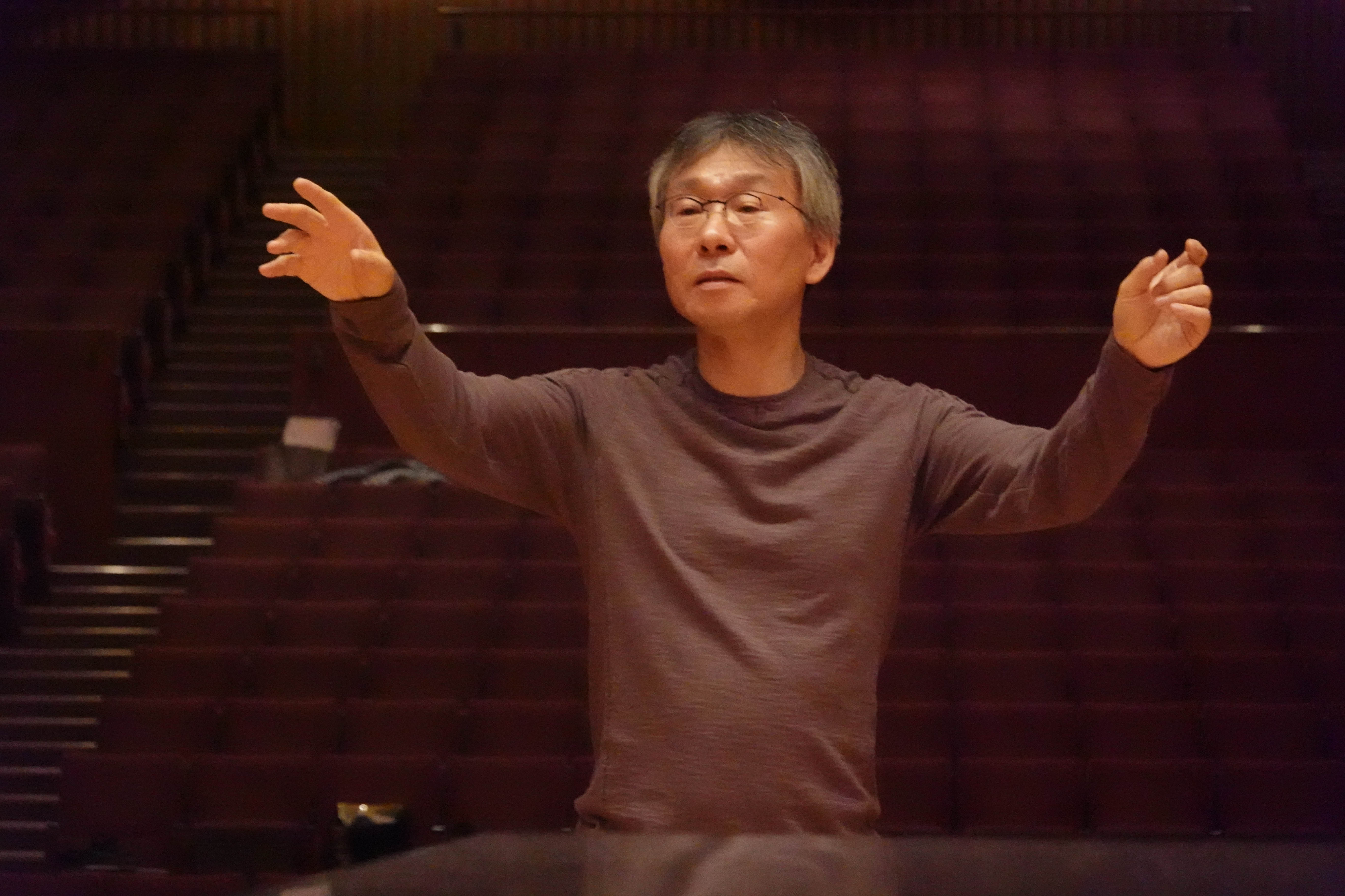 この日の練習は久々に大ホールが練習会場になりました。公演を行う大ホール、響きもあって歌詞の語尾“…n”となっているときの口の形の違いで響きが違うことが実感できました。