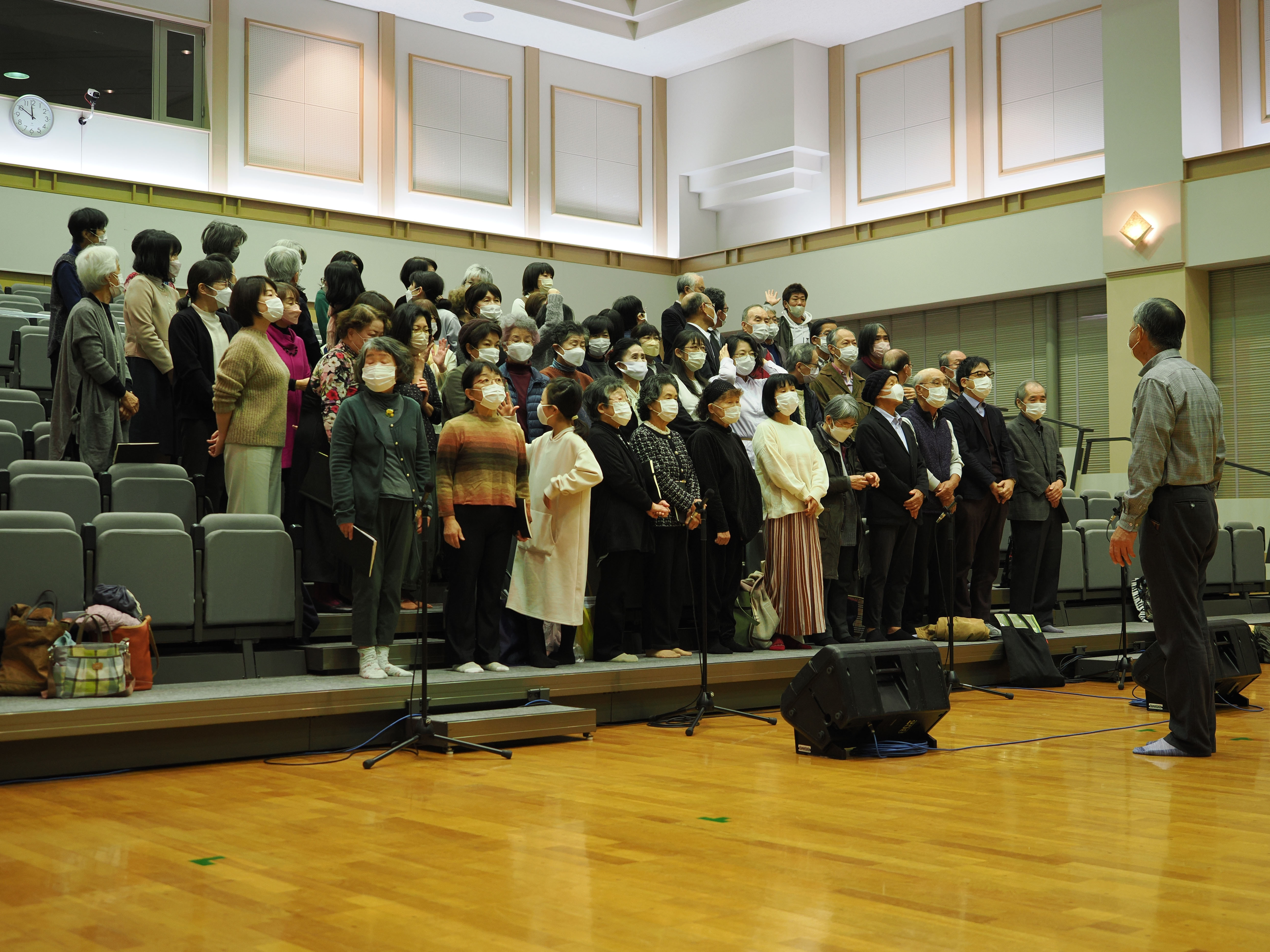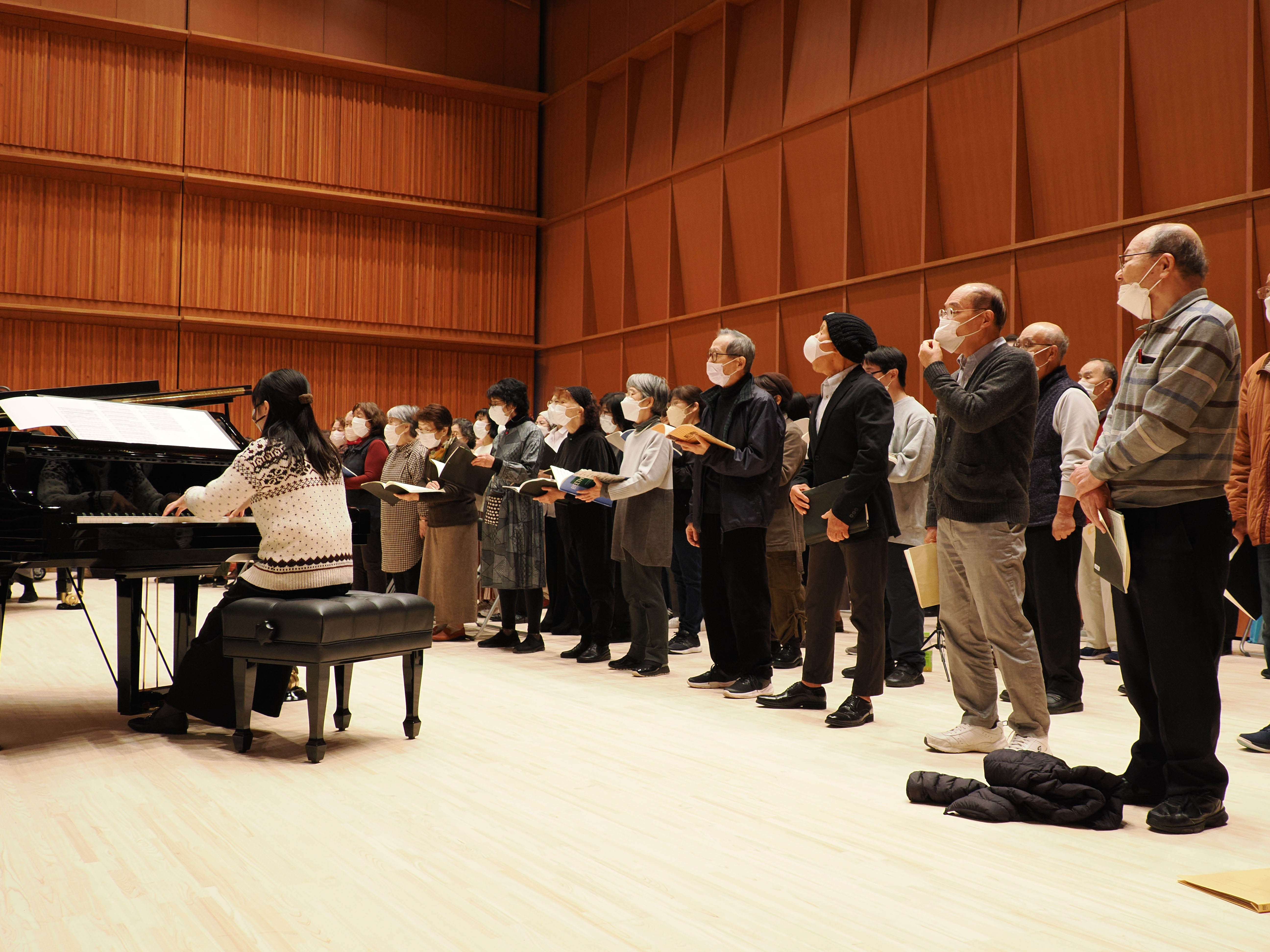 いつも指導をされる柳田先生は、今回、ソロパートも客席に向かって歌うので、その時の指揮は我々に背を向けることになりそう。
