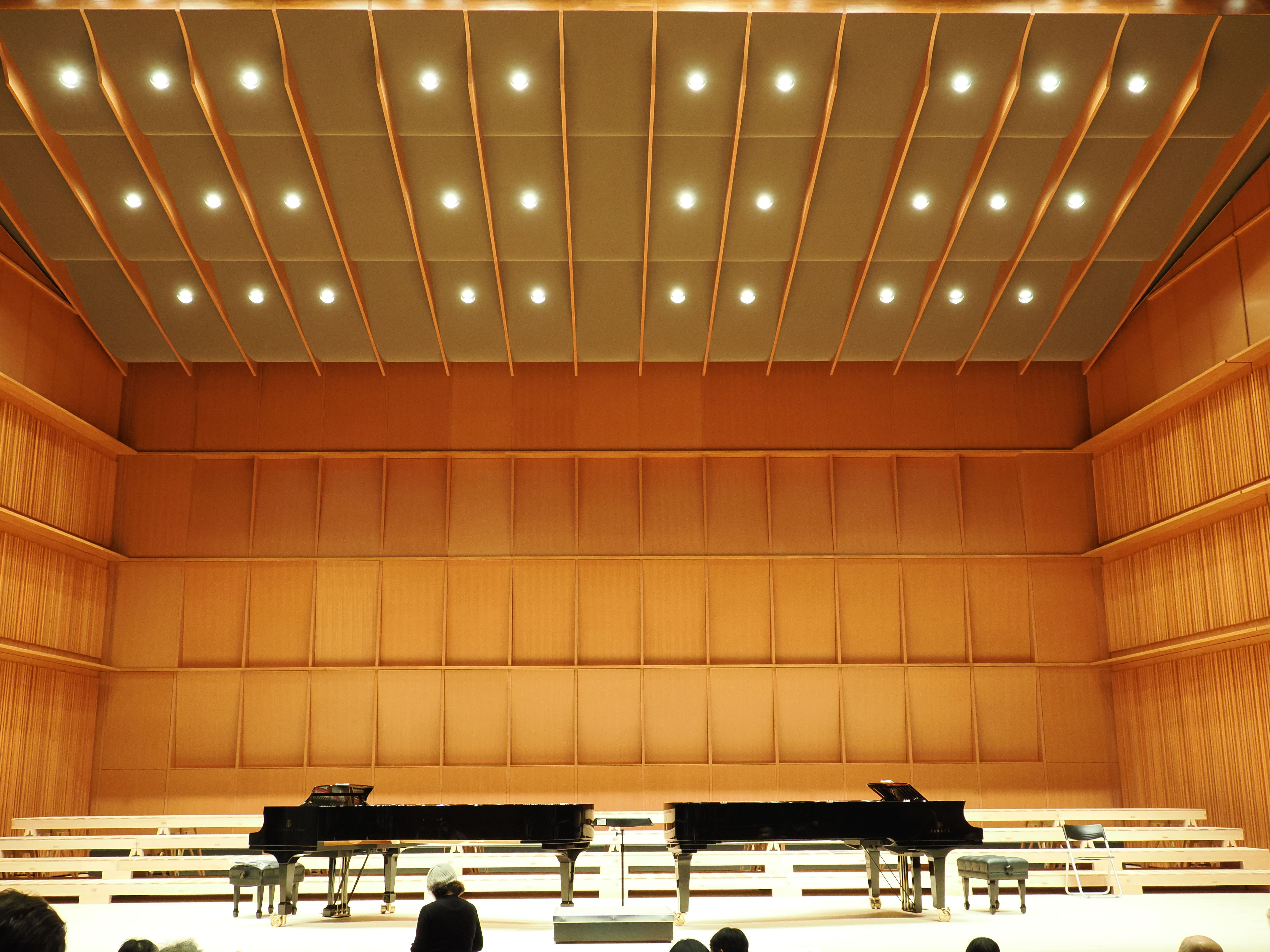 客席からピアノと合唱団の音のバランスを聴いていましたが、地元の杉材をふんだんに使っているからか、非常によく響くホールのようです。