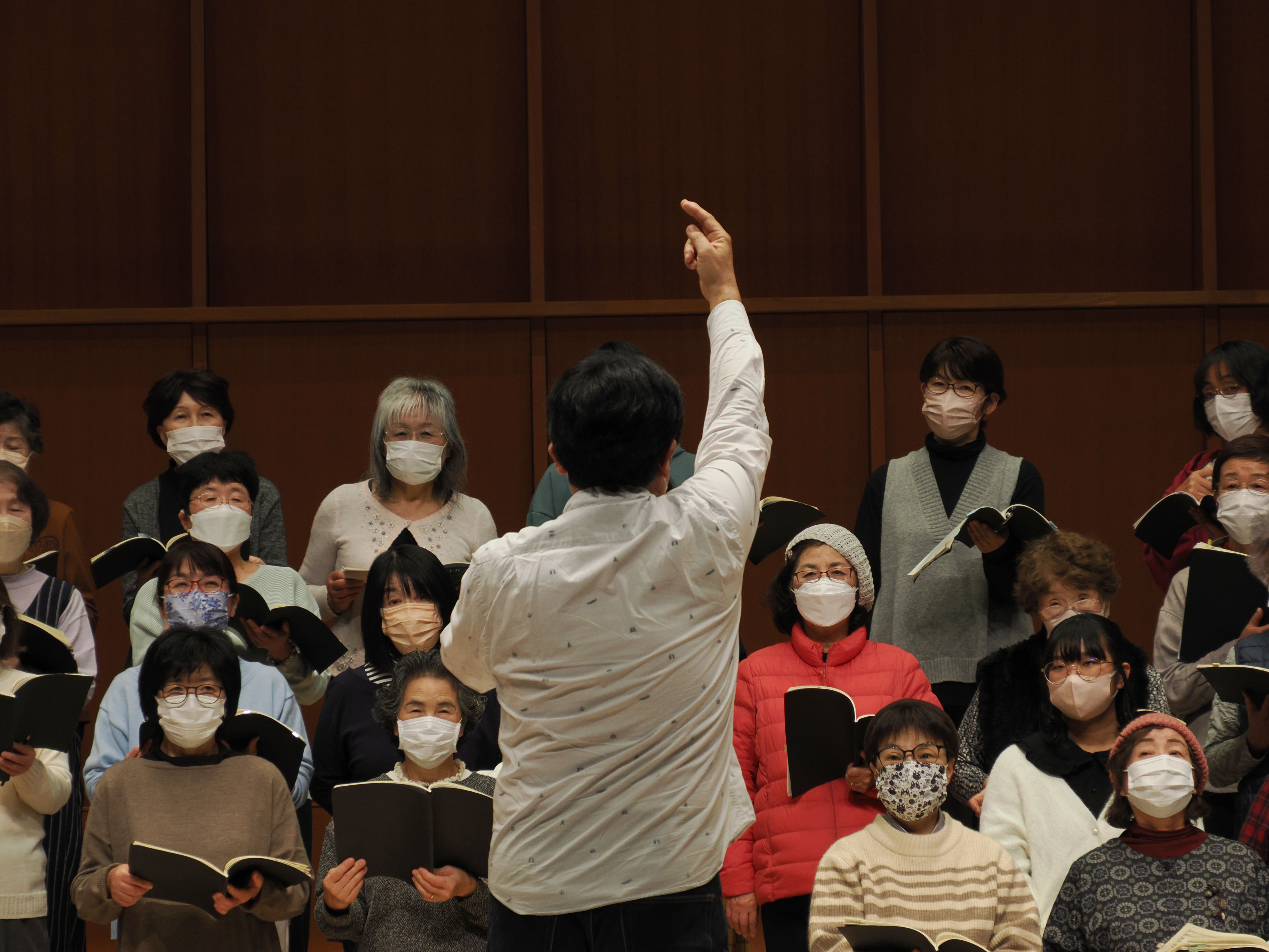 団員の立ち位置も仮に決められ、前の団員の背丈で指揮が見えない場合などの立ち位置入れ替えは、実際に立ってみて。