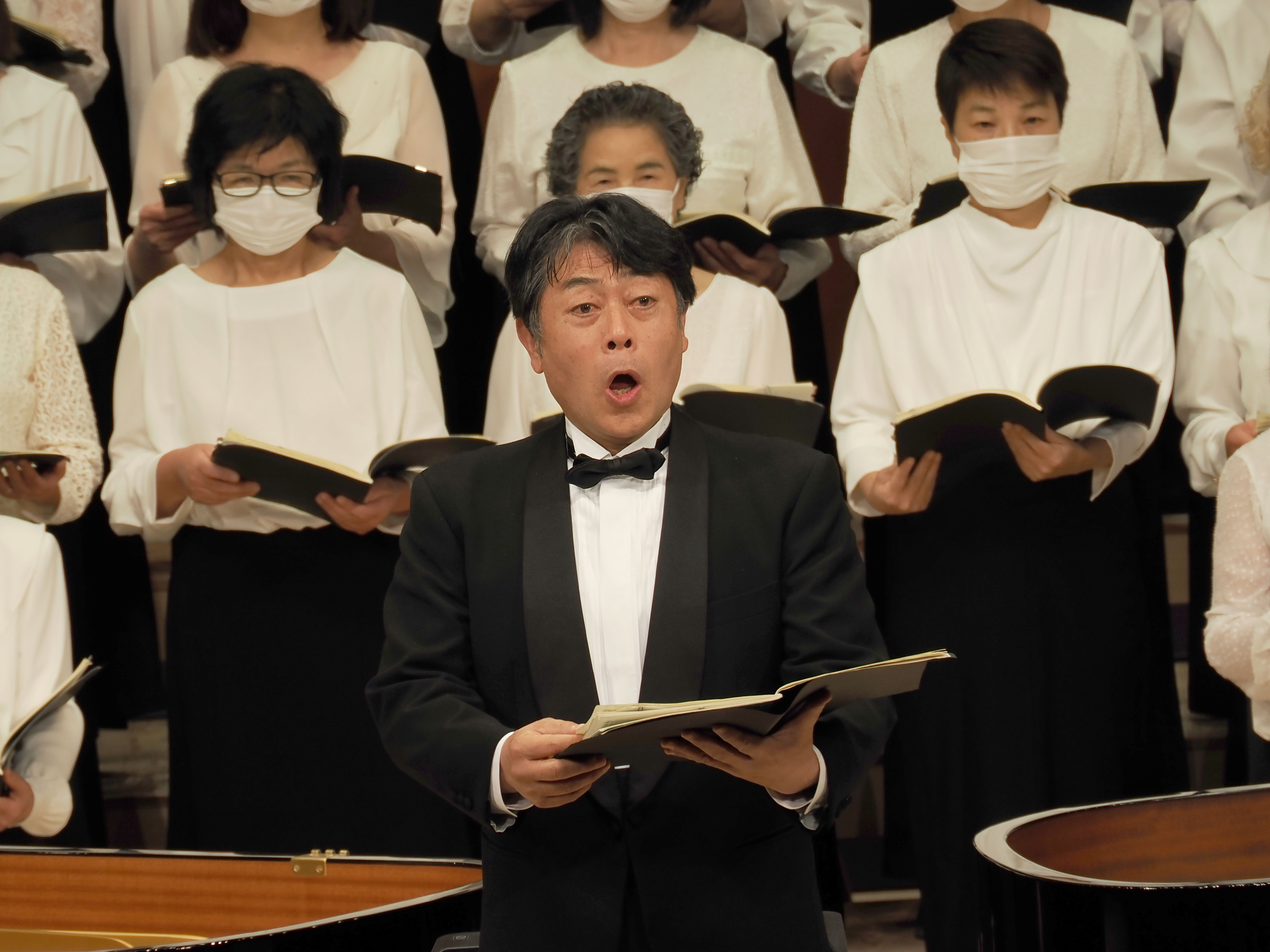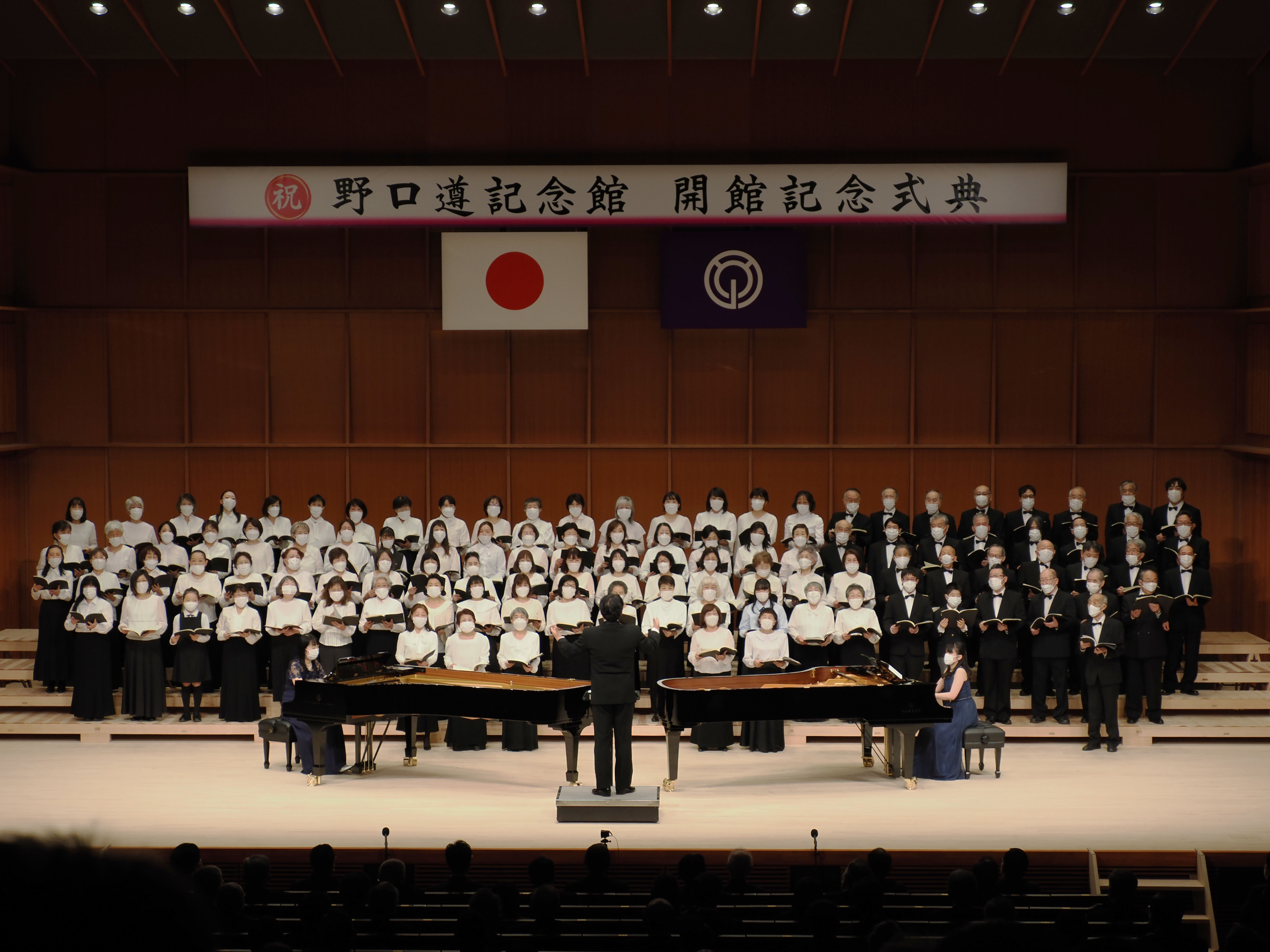 指揮とソリストをつとめる柳田先生の堂々とした歌声は、この野口遵記念館のホールによく響いて、それに呼応した合唱団も最高の出来栄えとなりました。