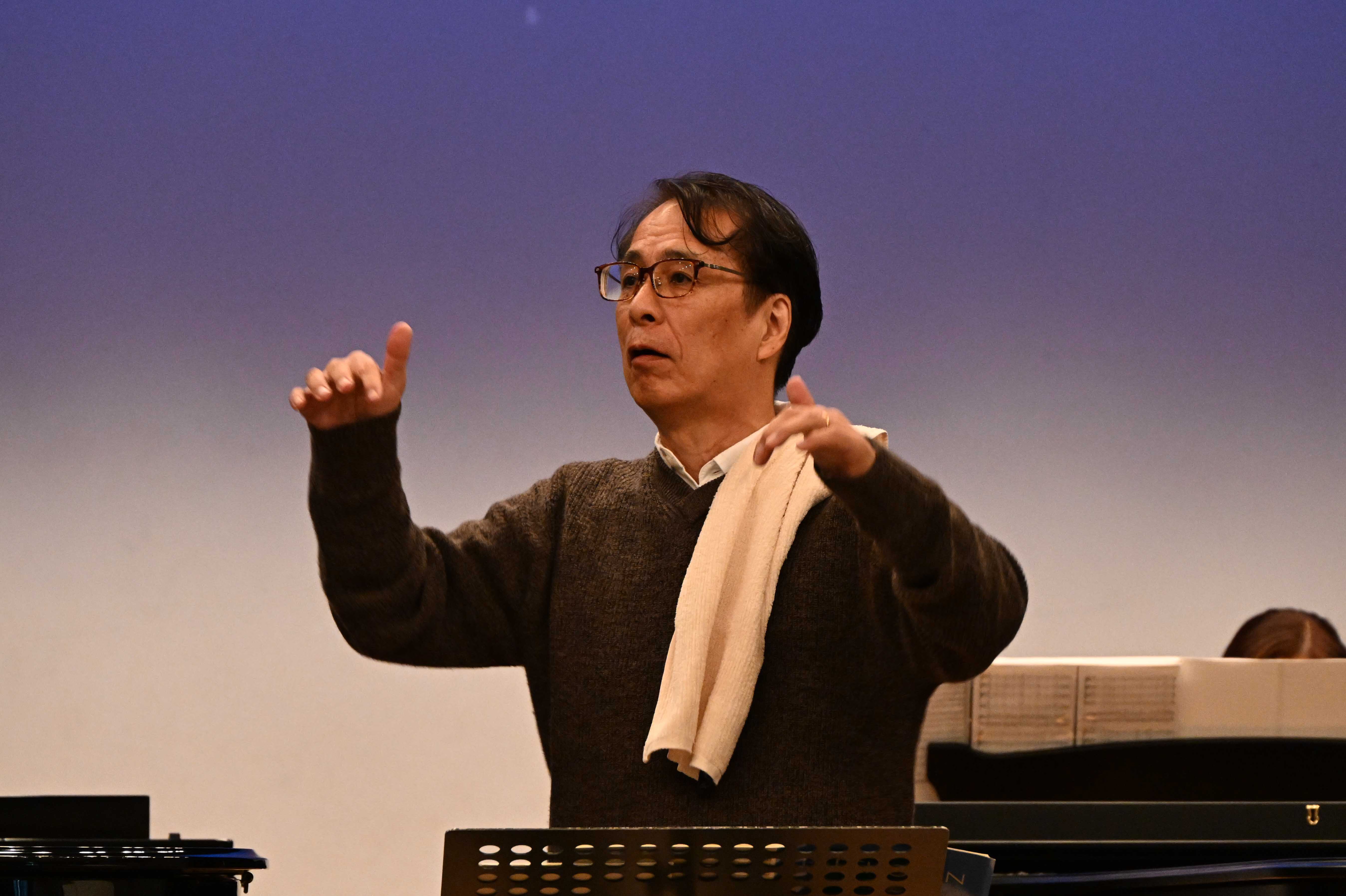 今日の練習は、公演の指揮をされる山本俊之先生のご指導でした。細かい部分までご指摘され、それにつれて合唱団の声が変わっていくのが実感できる内容でした。