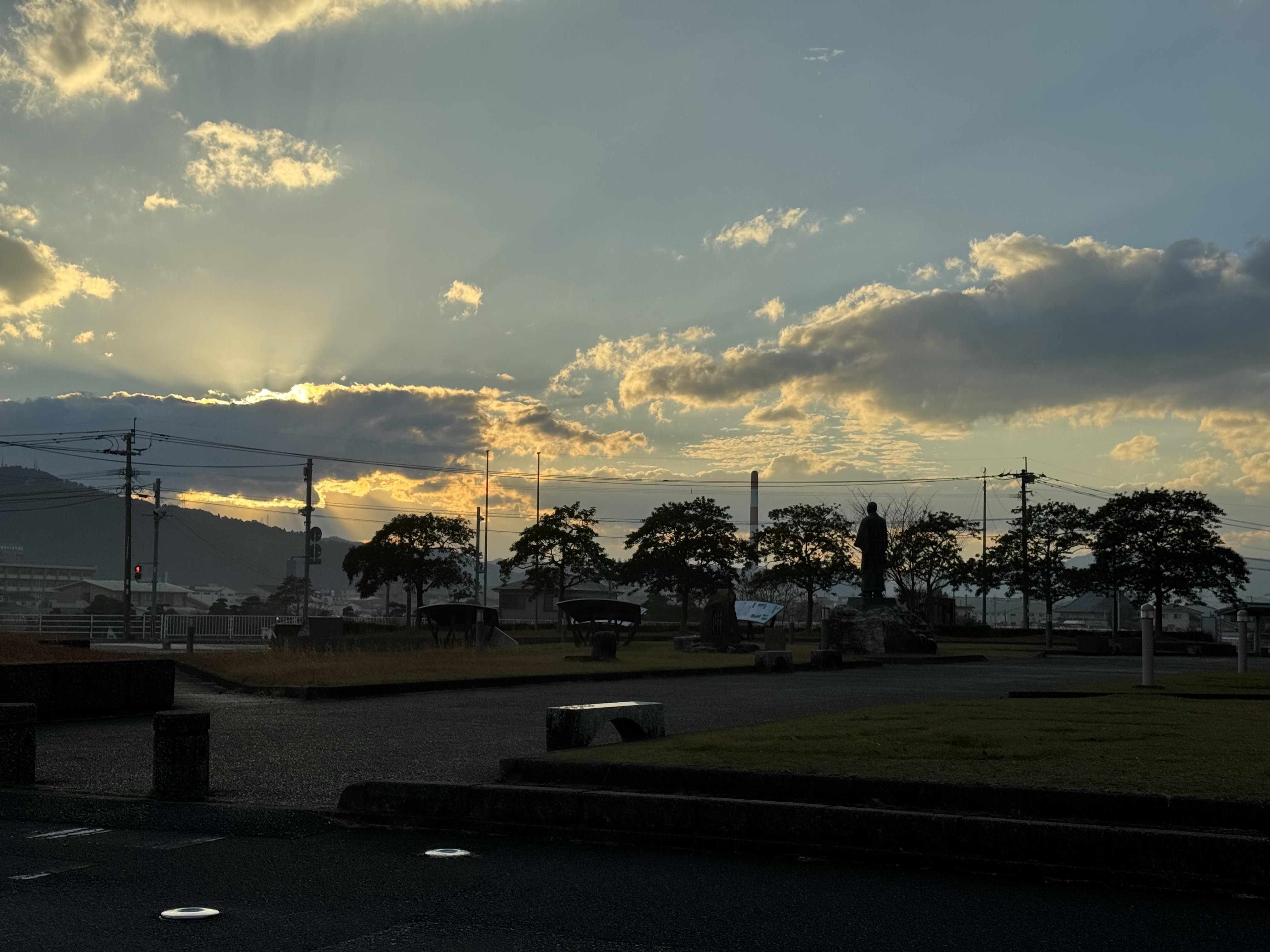 明日が公演となる前日、会場の都合で延岡総合文化センターで最終練習を行いました。早めに会場に到着、今日は12月としては133年ぶりの夏日だった宮崎県。夕陽が綺麗に焼けていきます…