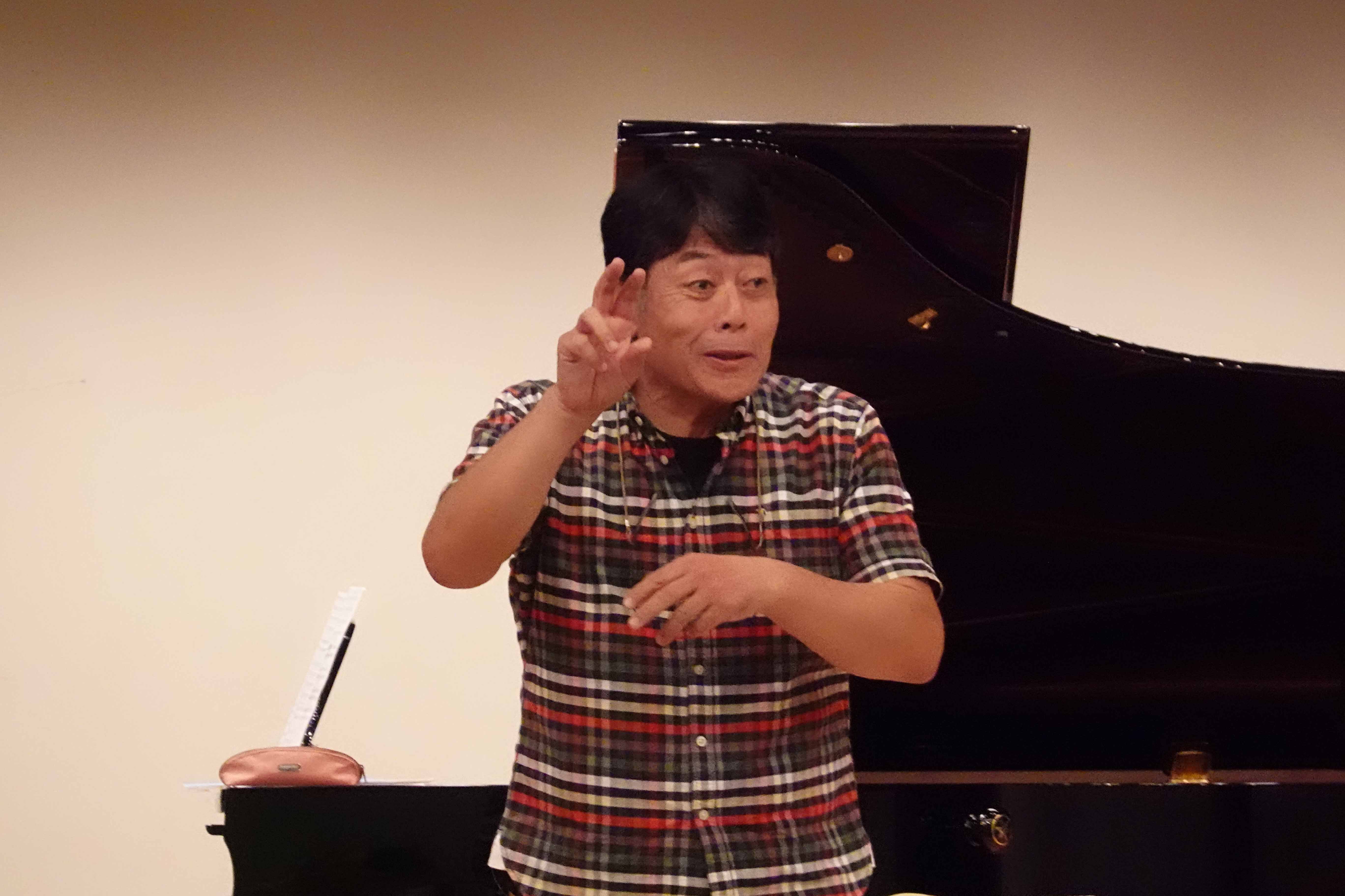 全体練習の最初に、楽譜に記載されたテンポを確認しましたが、指揮者の山上先生のテンポはどうなるでしょう…