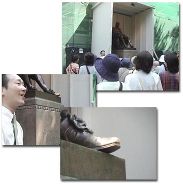 - 訪れたときは夏休み期間中なのか、像のまわりが工事中でした。靴の先にさわると、“またハーバードに戻って来られる”といういわれがあるとかで、先だけピカピカに光っていました。(さわっておけば良かった…)