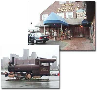 - Arthony's PIER4 夕食会場になっている店の“Pier”というのは“桟橋”という意味なのか、海のそばにありました。入り口になぜ機関車があったのかは不明です。