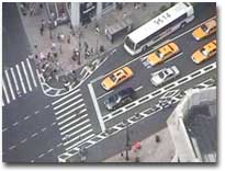 - 大きなビルボードに黄色のタクシー