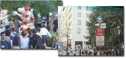 - バスの窓からカウパレードの牛がまた見えました。バレリーナの姿(プラザホテル前)