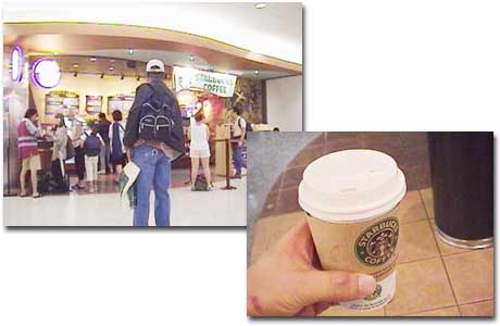 - ニューヨークの町中でみかけたあの看板、アメリカにいるあいだに1杯はこっちのを飲んでおこうと思っていたスターバックスコーヒーを飛行機搭乗前に飲むことが出来ました。(…味?…ぬるいです。とりあえず“飲んだ”とでも言っておきましょう。)