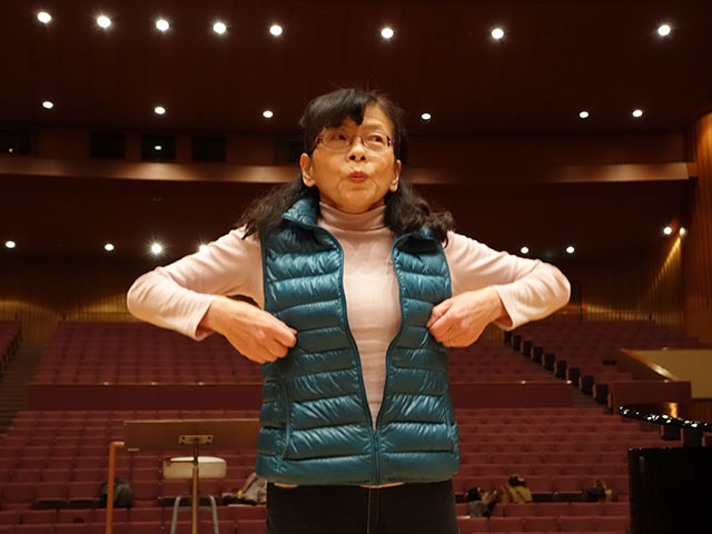 練習会場の大ホールでいつもより早めに集合して、まず藤本先生の柔軟体操から。