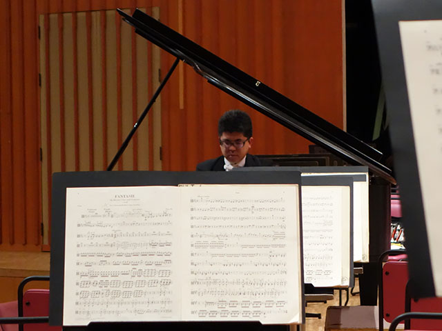 会場の開場直前まで合唱幻想曲のピアノソリスト、片野さんの練習が続いています。