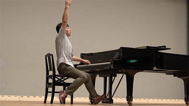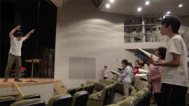 「第九」の最後の部分の練習、特にソプラノとテノールの声の出し方は発声練習でやった要領で出して力んで出さないように…
