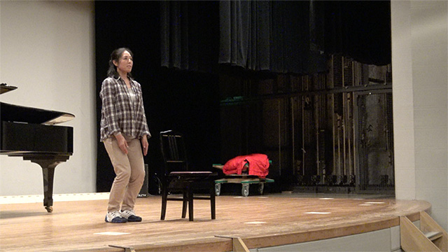 発声練習は柳田先生。息を出すからヘコむというよりお腹をヘコますから息が出るというイメージ…