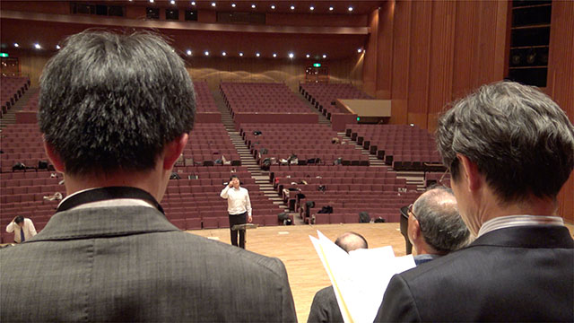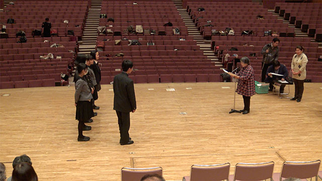 本日は翌日の本番のひな段が組まれ、そこに立っての練習でした。入退場のリハーサルなども入るため、その内容も1回通すのみ。