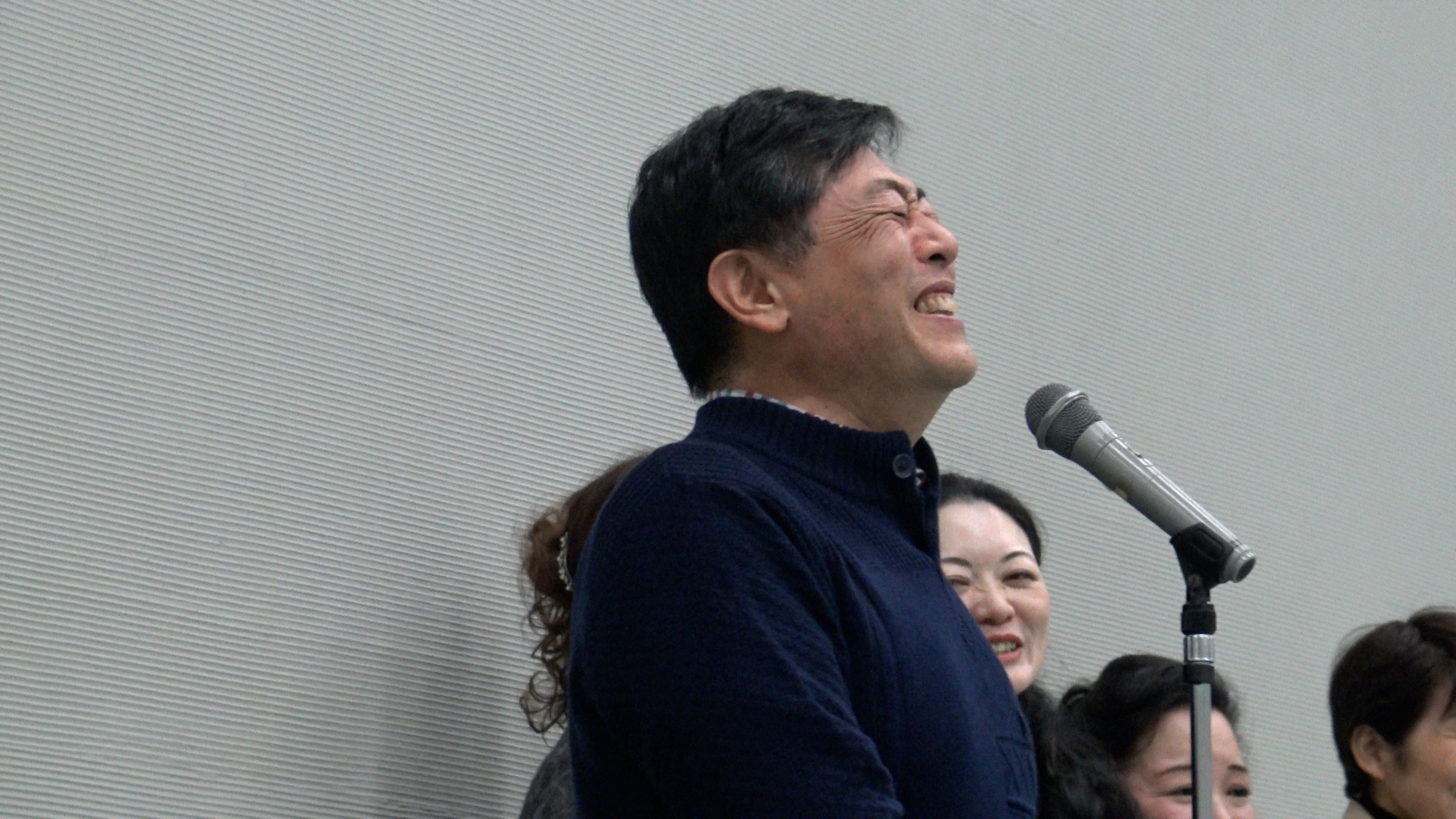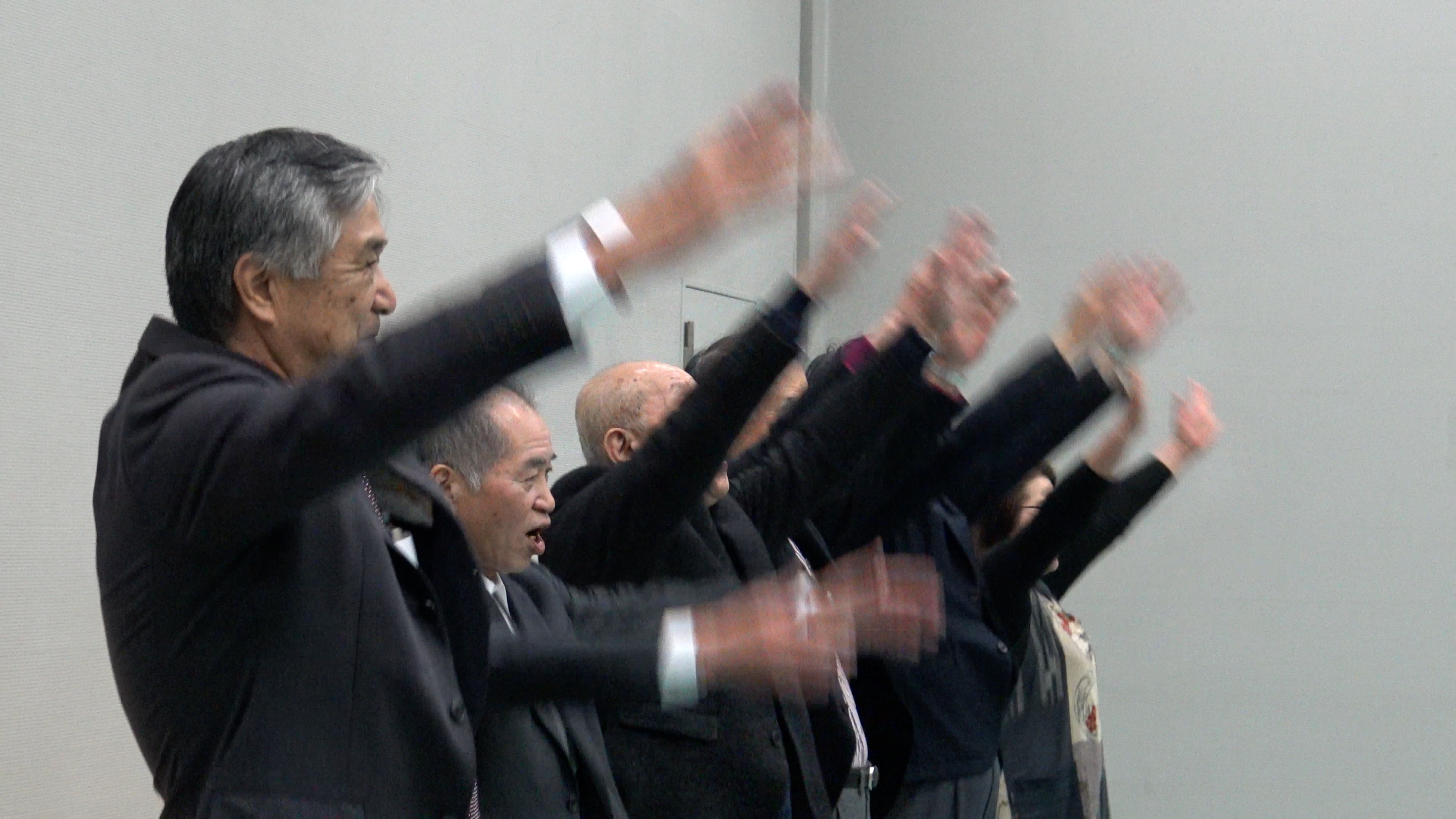 打ち上げの最後、渡邊さんと「第九」プロジェクトチームの万歳三唱でおひらきです。