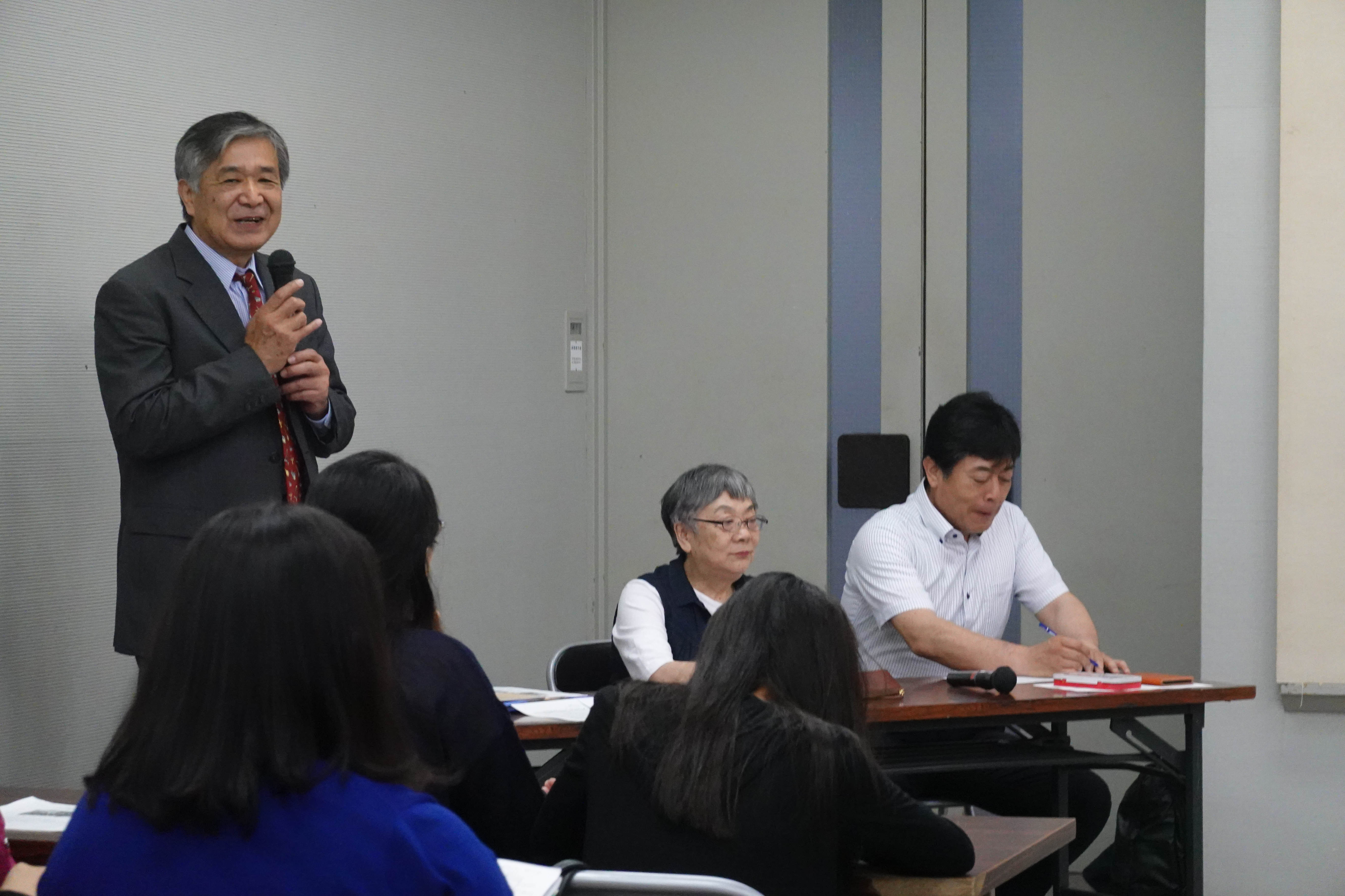 今村愛子会長からのごあいさつ、午前中には今年一旦閉館して建て替えが始まる野口記念館の式典に出席した際に思い出した、記念館で皆と語り合った思い出「いつか延岡市で「第九」演奏会を…」という願いが叶えられて長年歌ってきたが、来年の国民文化祭開催時に「第九」が35周年記念となることの重要性、そして今後は若い団員とともに続けて行きたいという決意が語られました。