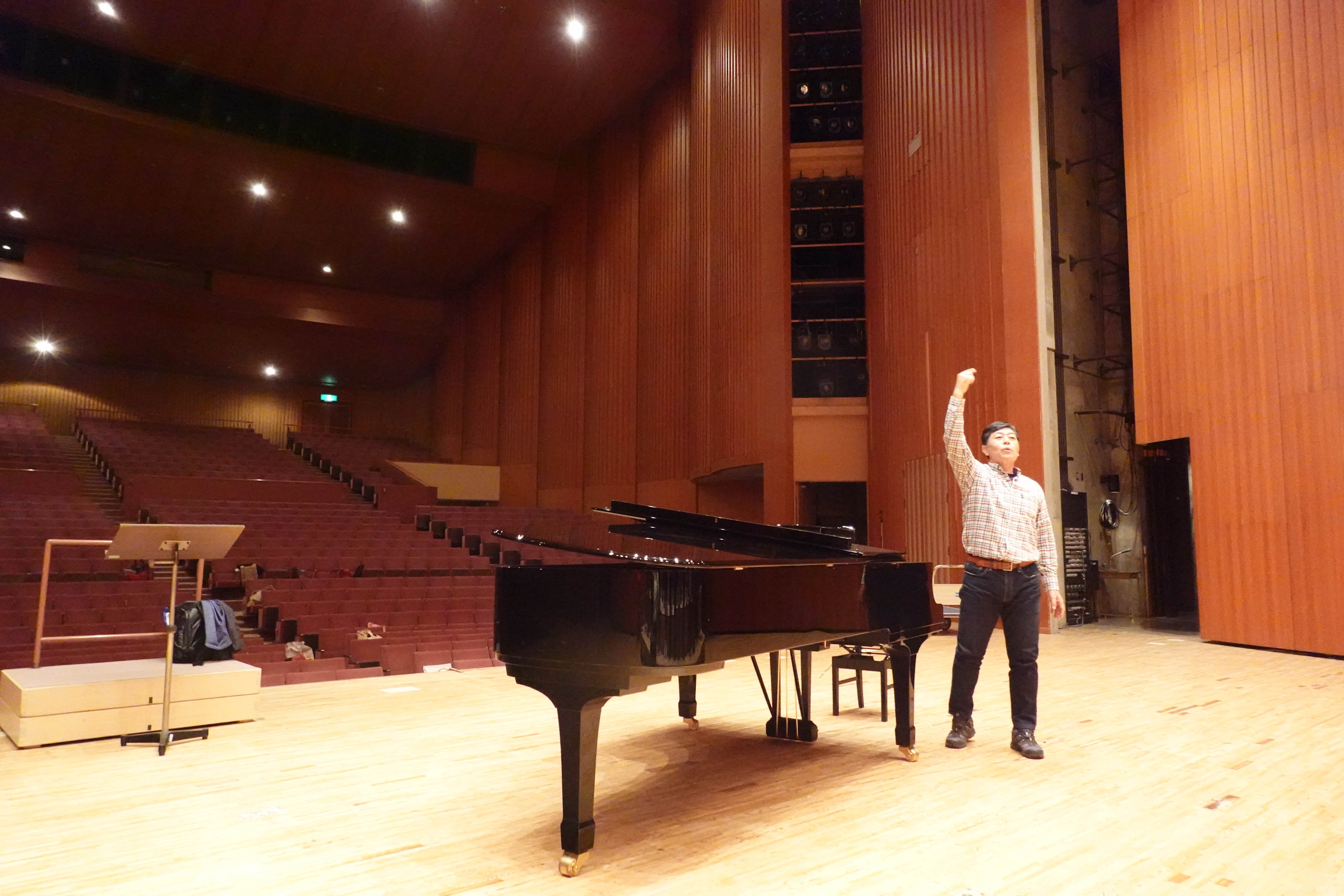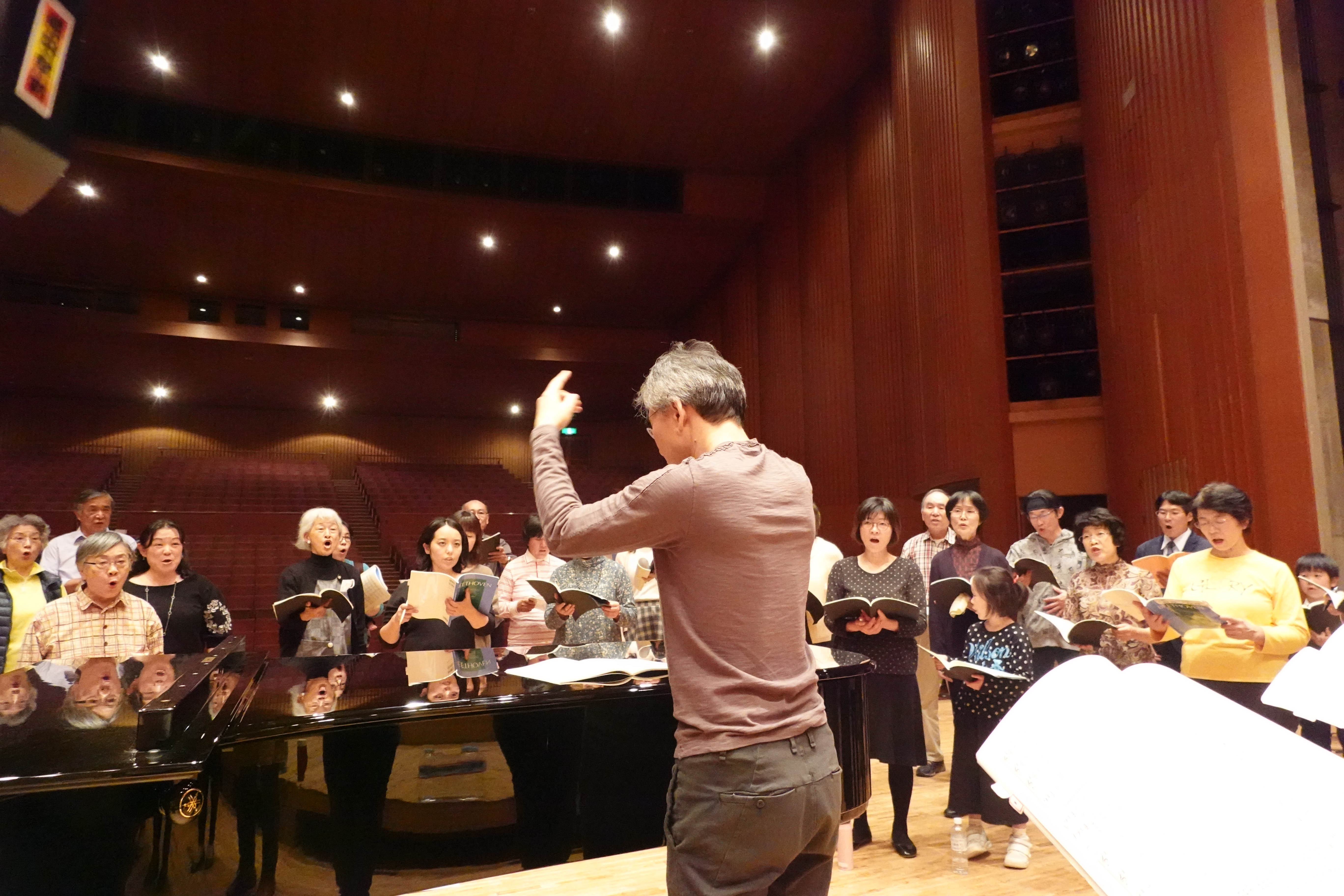 この日の練習は久々に大ホールが練習会場になりました。公演を行う大ホール、響きもあって歌詞の語尾“…n”となっているときの口の形の違いで響きが違うことが実感できました。