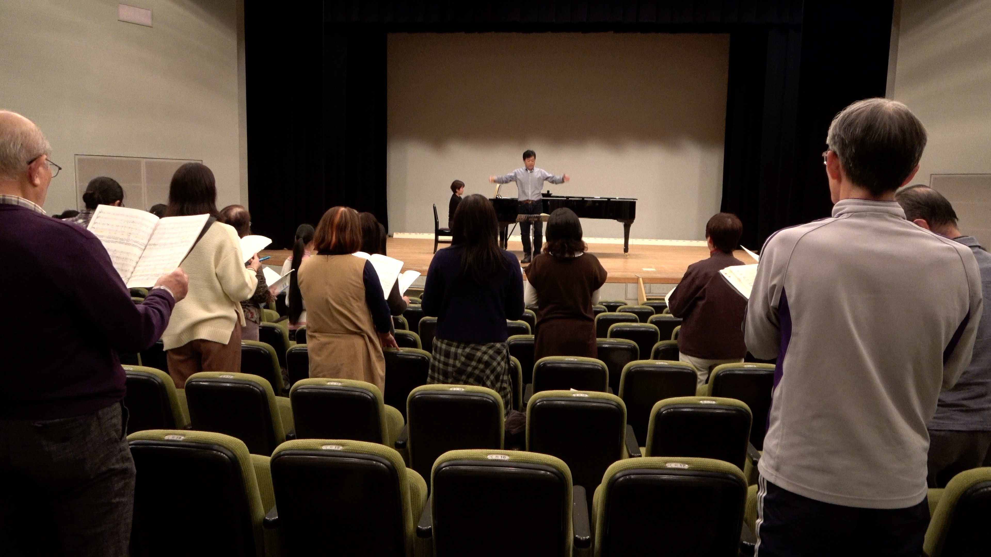 柳田先生のソロを歌われた部分は動画の5分すぎ。この日の練習に参加できなかった団員も実際のテンポをこの動画から会得してください。