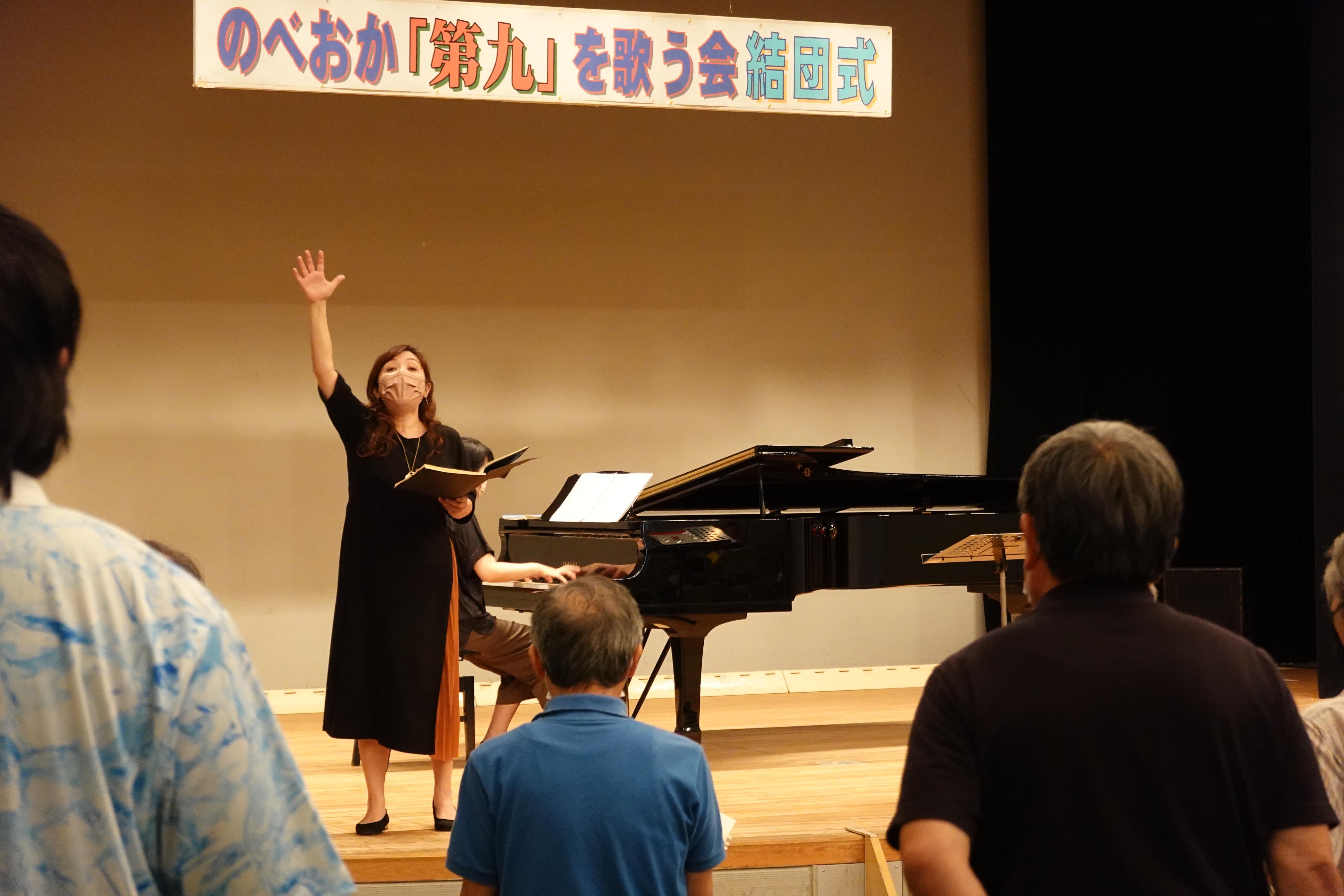 今日の練習範囲を全体で合わせ「もう少し“明るく”歌おう! みなさん疲れている!? 」久しぶりの練習で、最後の方は皆さんお疲れだった様子。