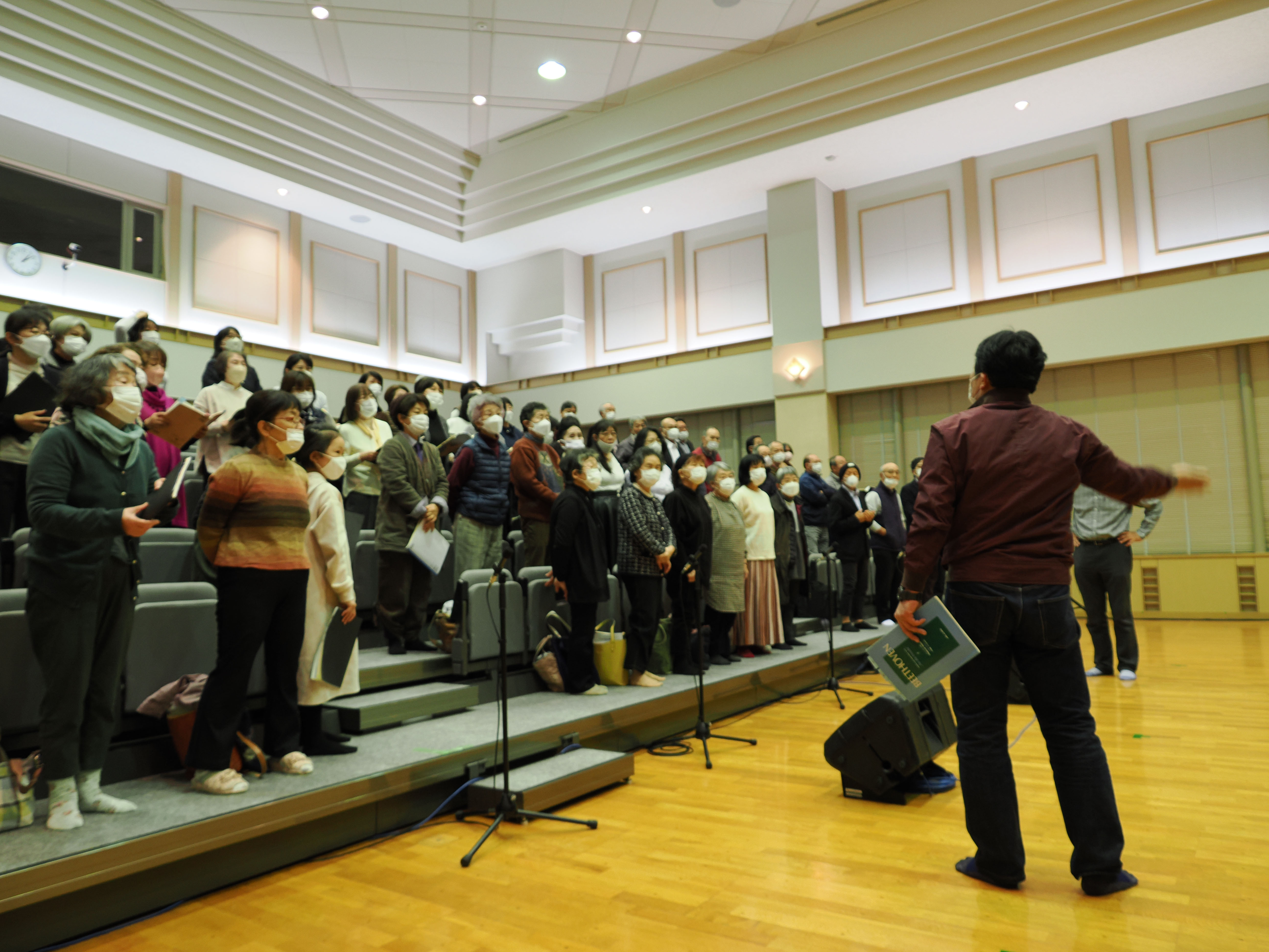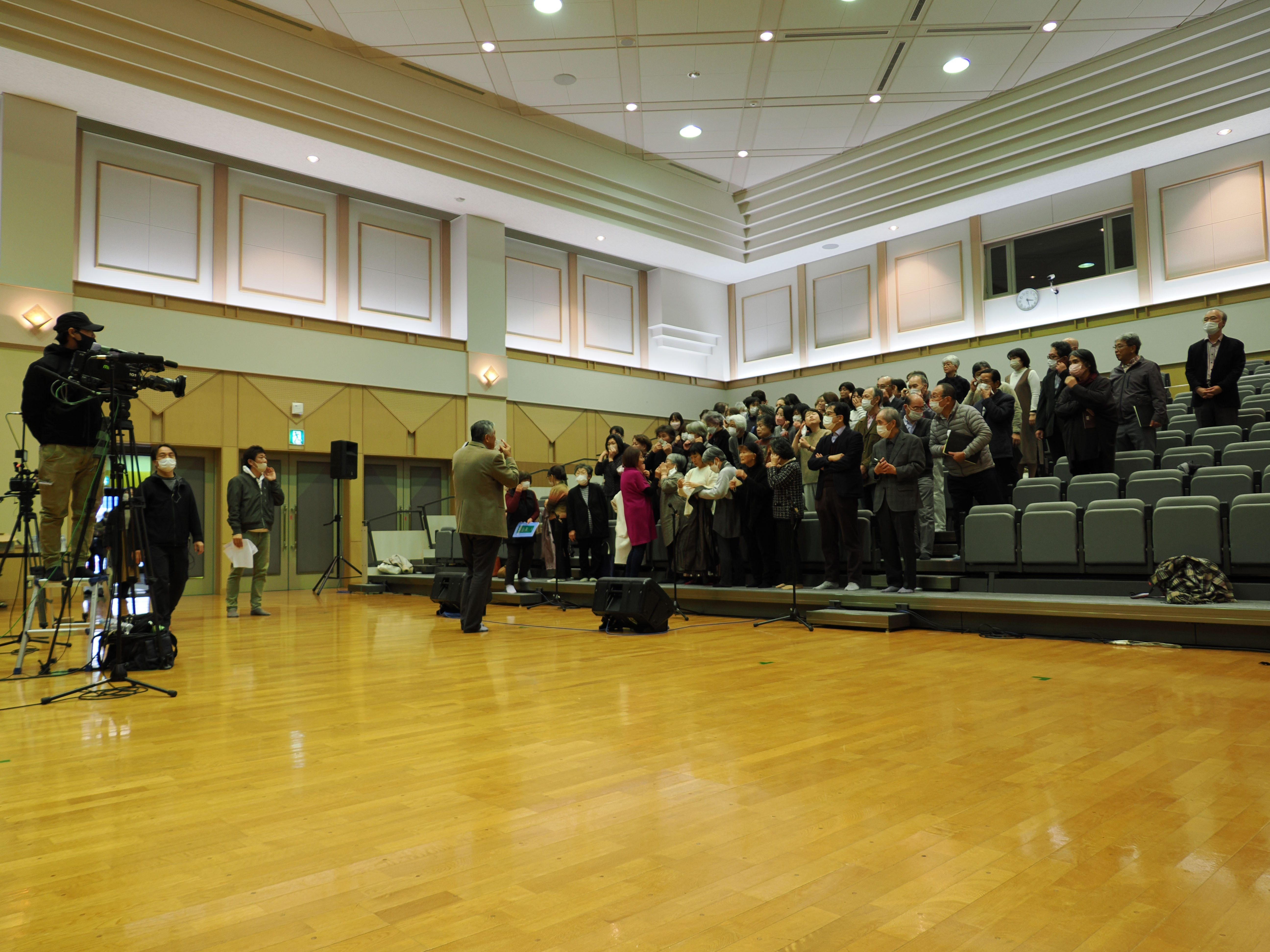 まず、サントリー1万人の第九のリモート収録のために、カルチャープラザのべおか多目的ホールに集合。