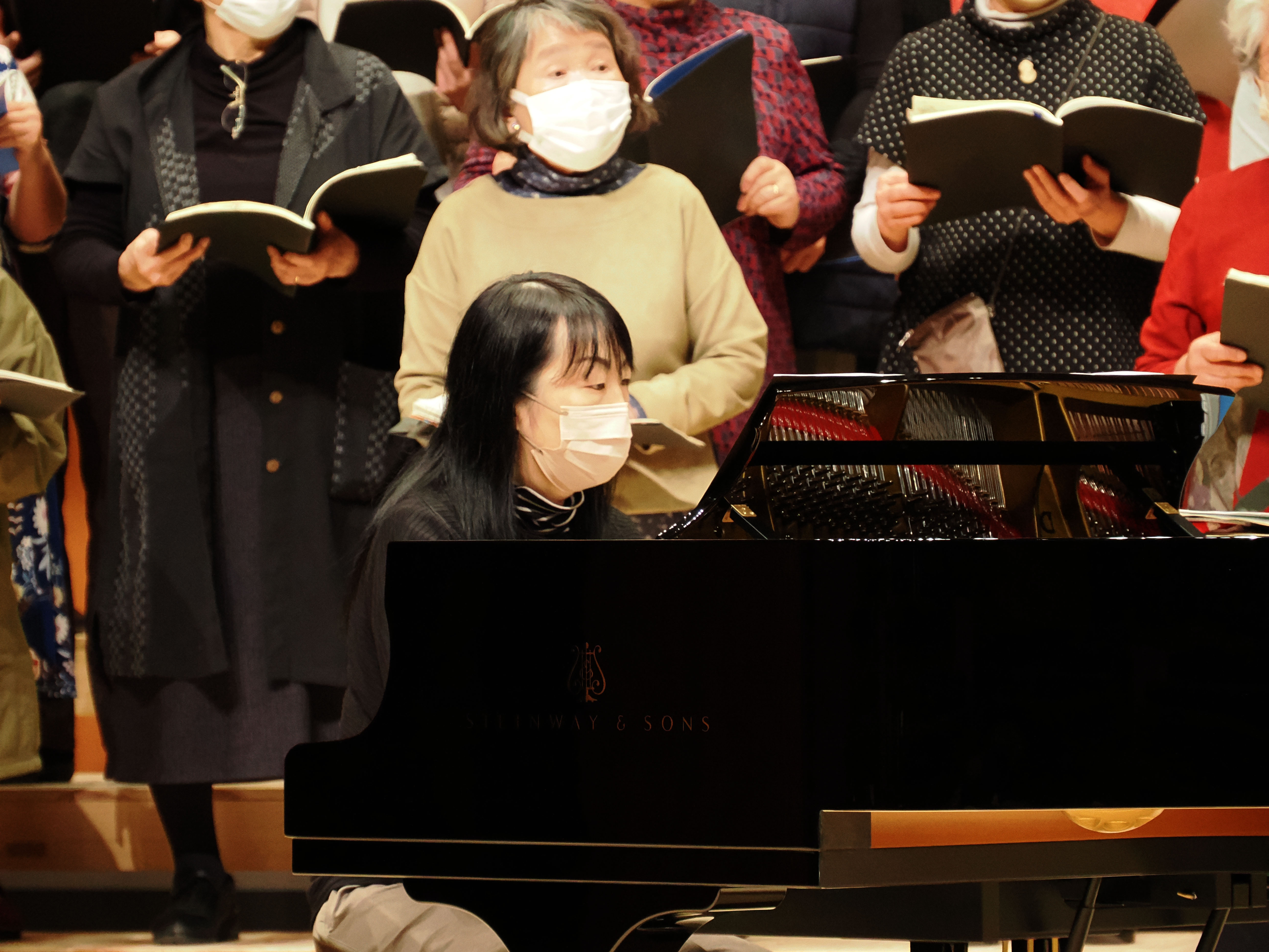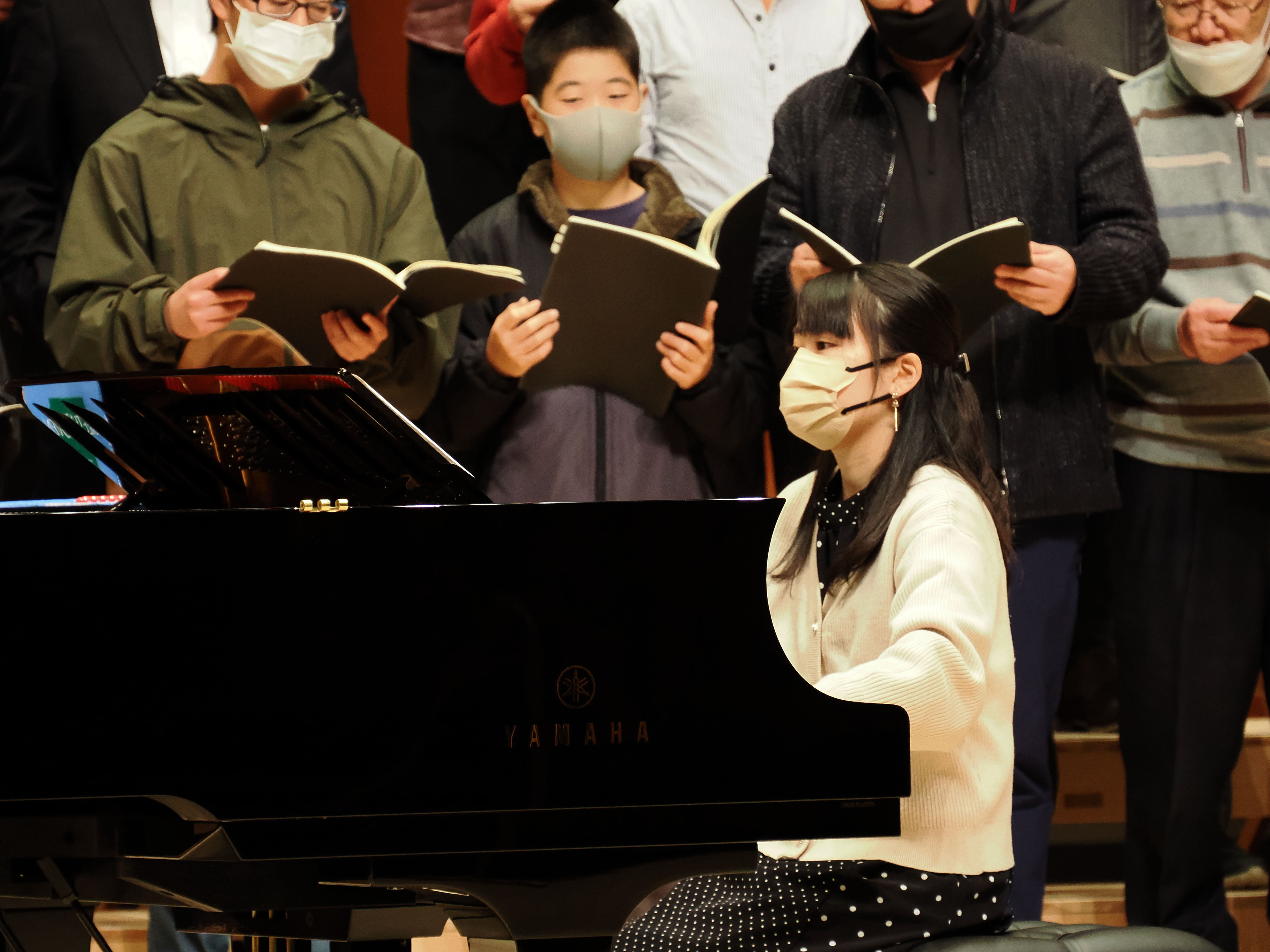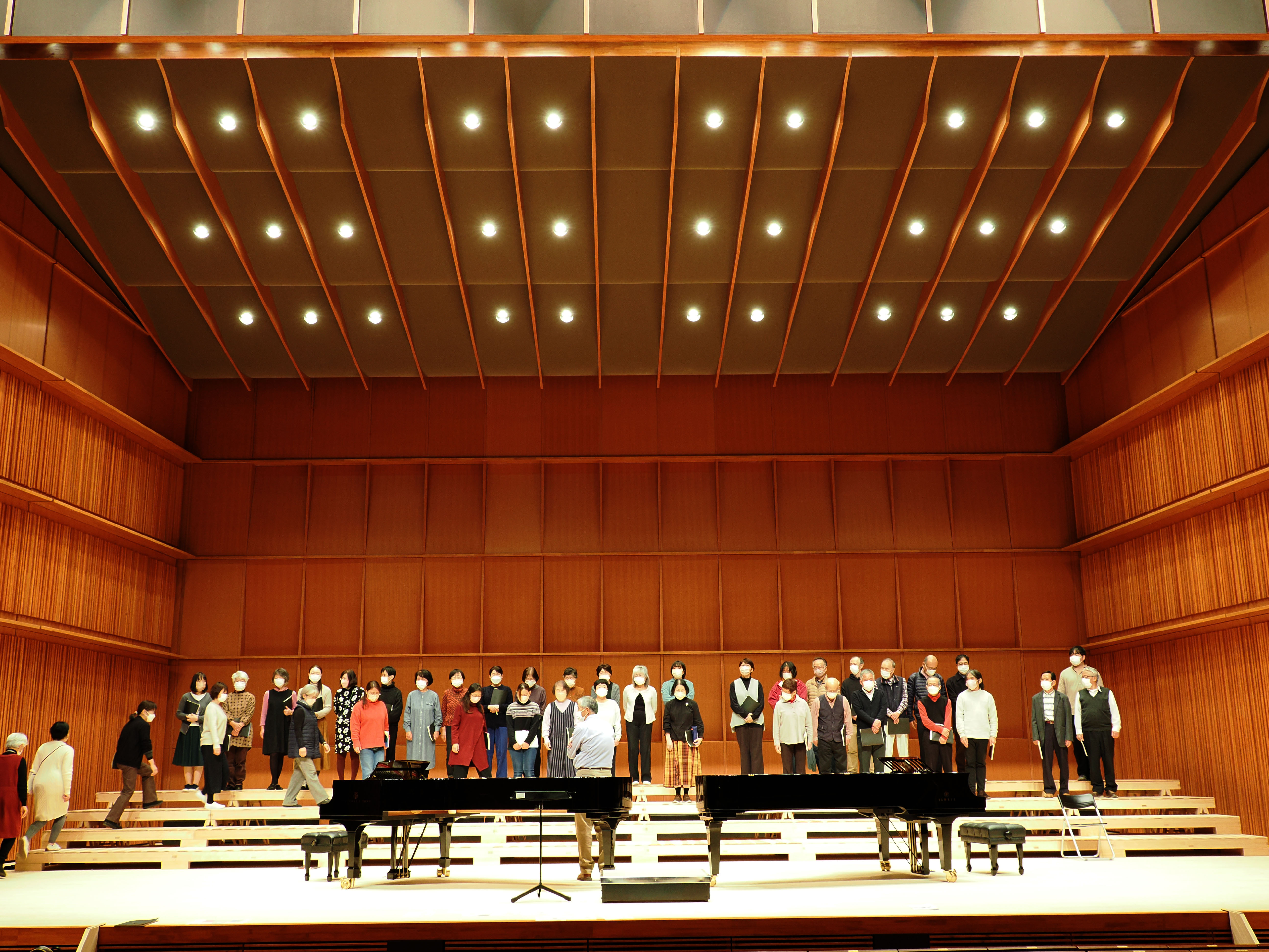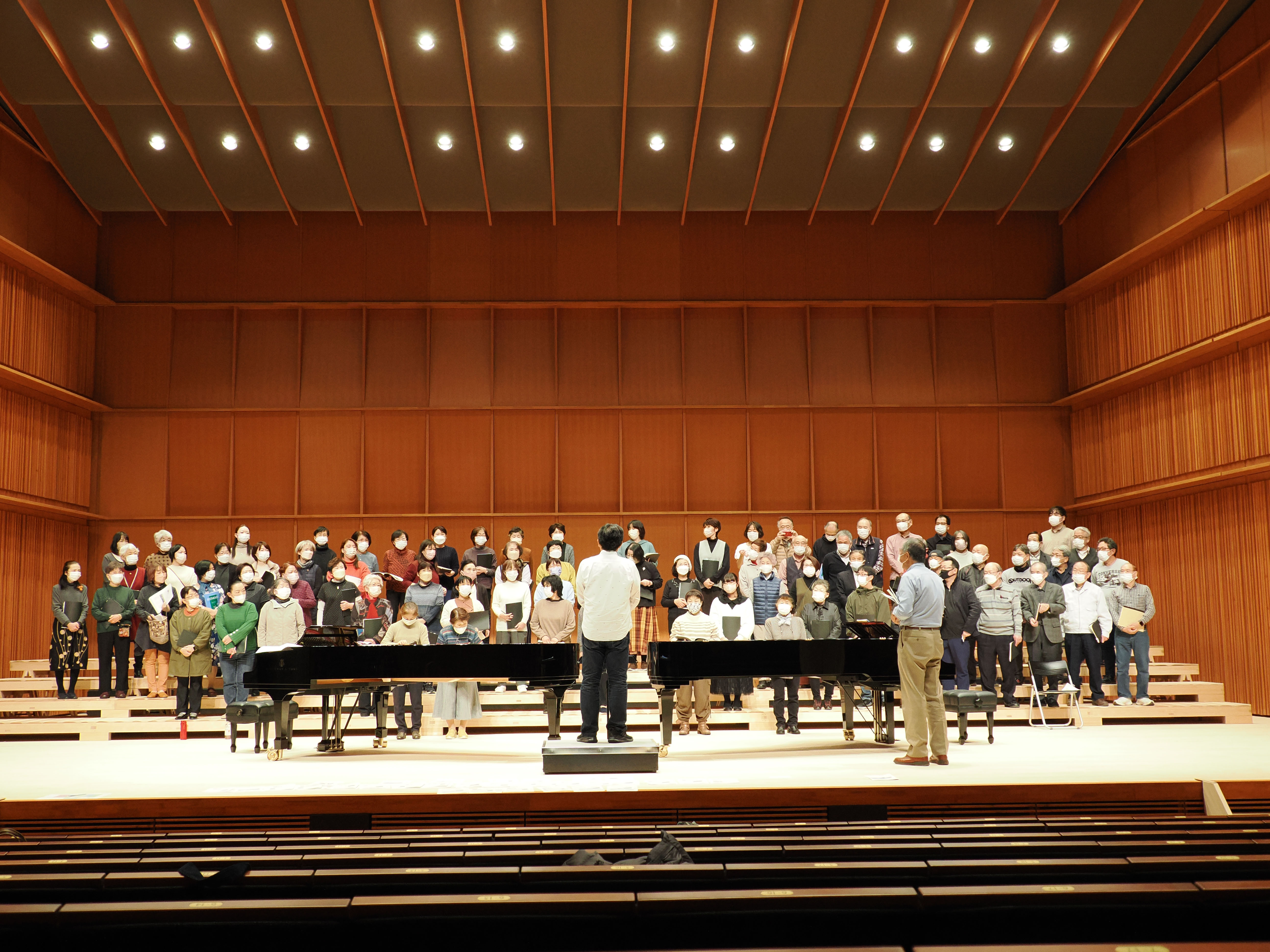客席からピアノと合唱団の音のバランスを聴いていましたが、地元の杉材をふんだんに使っているからか、非常によく響くホールのようです。