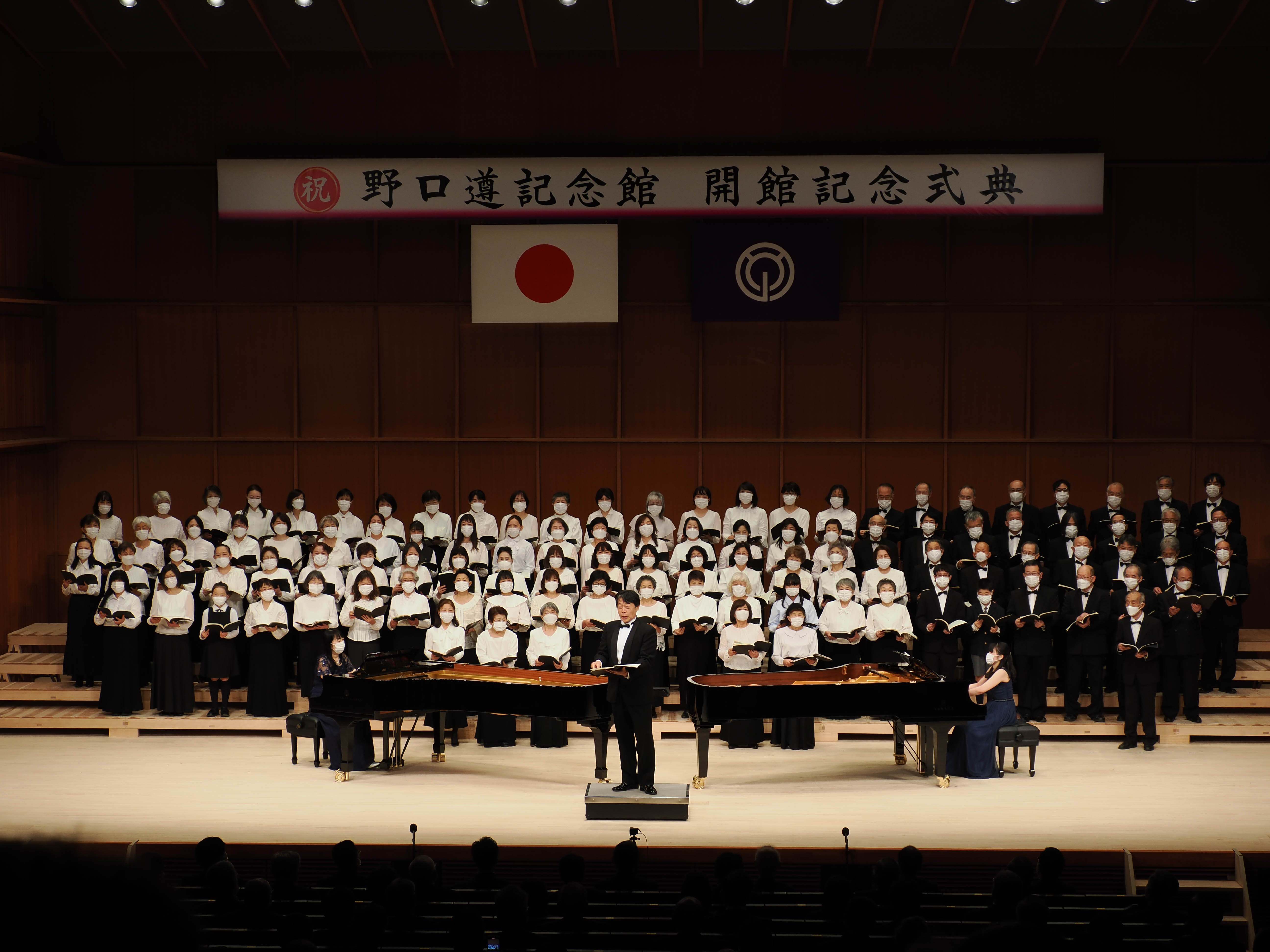 指揮とソリストをつとめる柳田先生の堂々とした歌声は、この野口遵記念館のホールによく響いて、それに呼応した合唱団も最高の出来栄えとなりました。