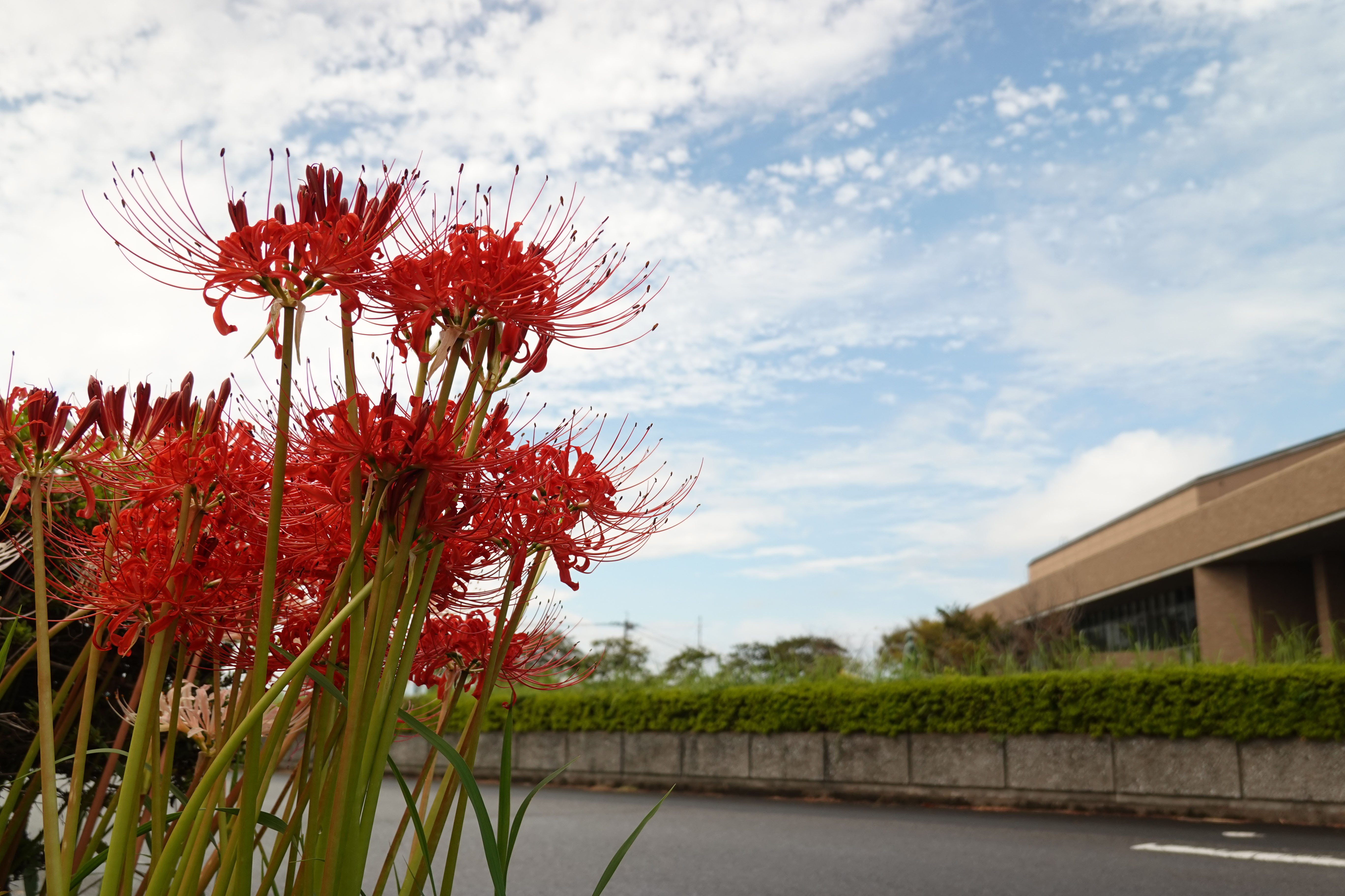 10月になってもなかなか涼しくなりませんが、文化センターの入り口には彼岸花が咲いていました。
