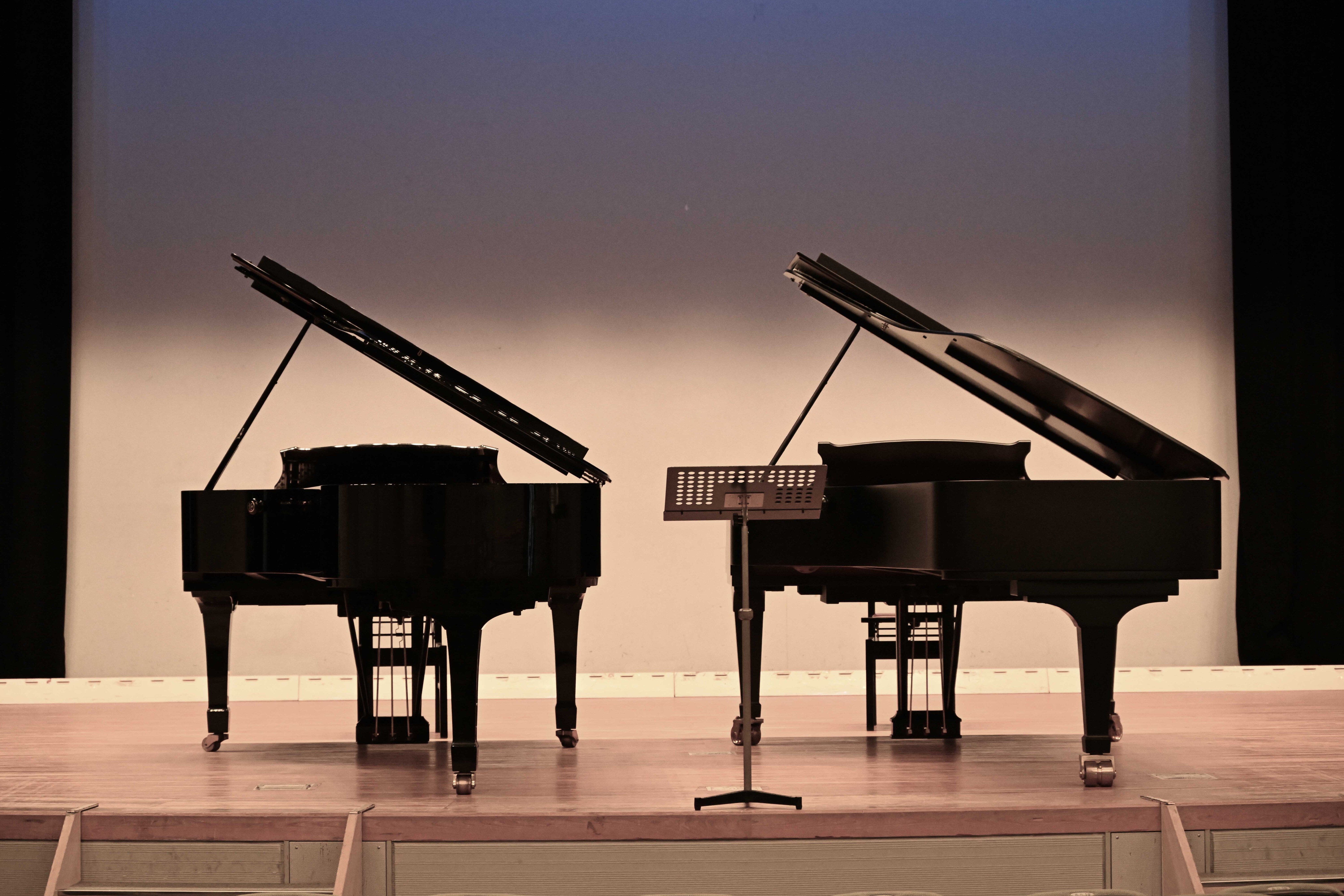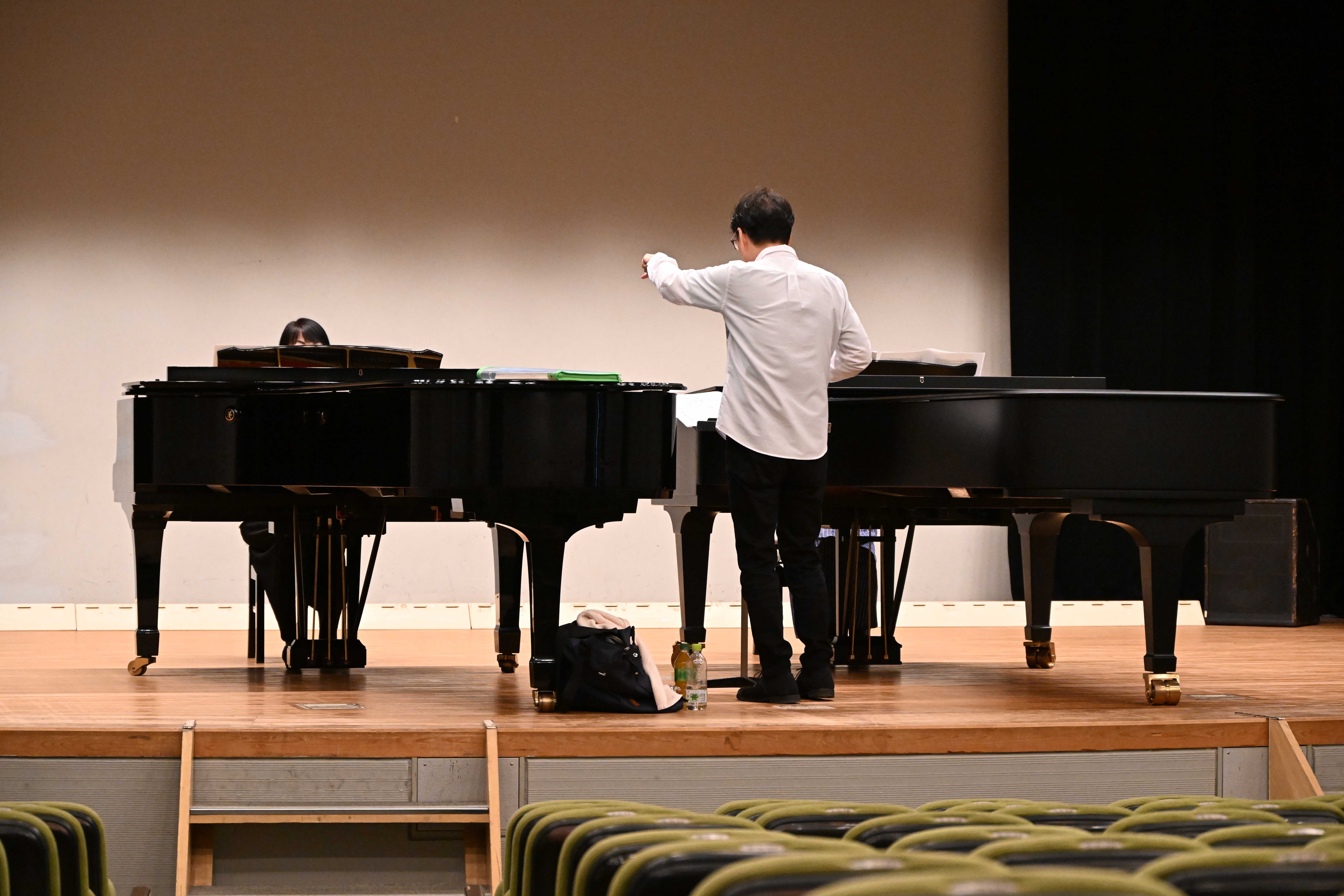 過去一番暖かい勤労感謝の日の練習でした。今日の小ホールの舞台上はピアノが2台準備されていました。