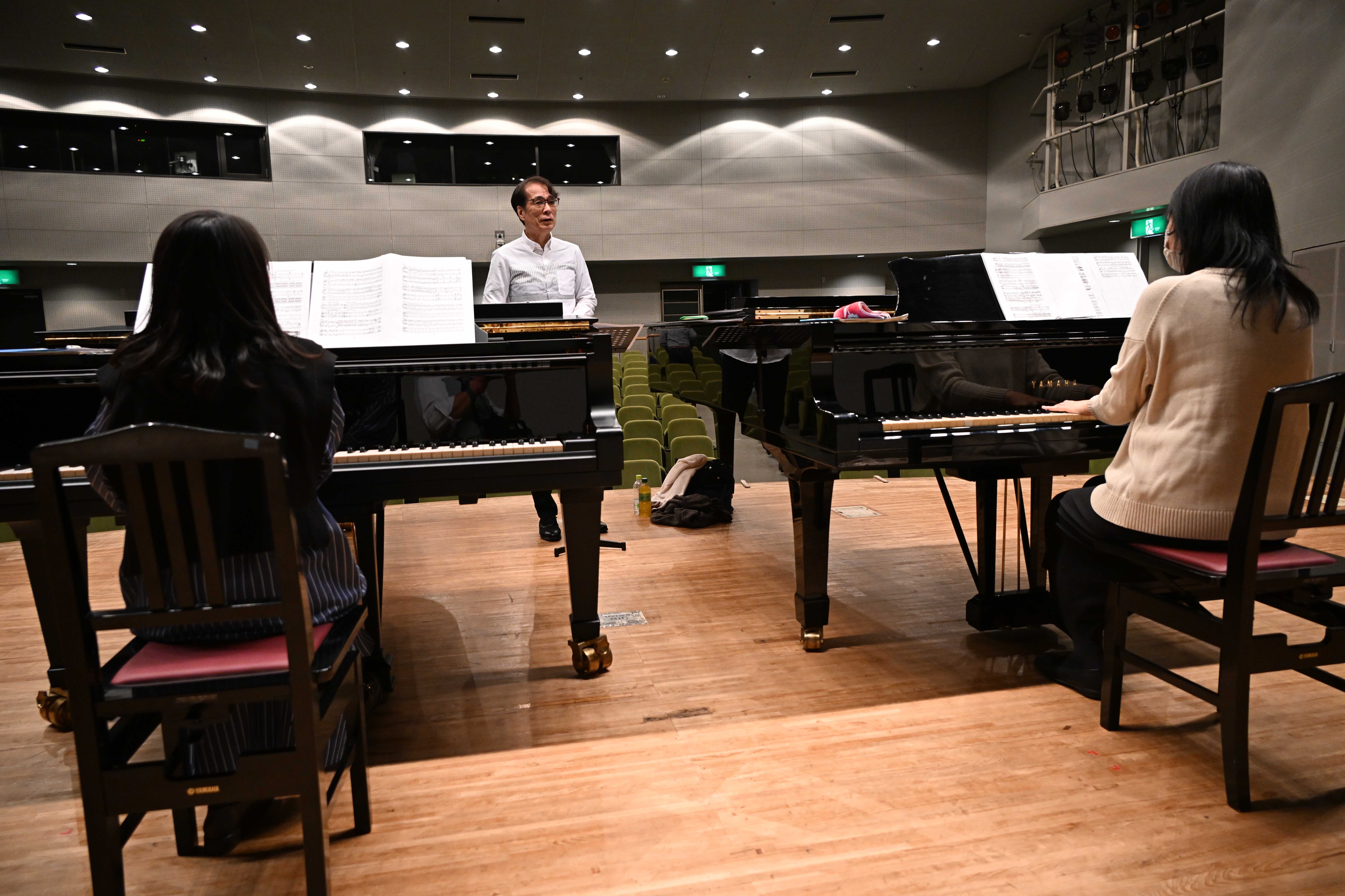 合唱団の練習が終わった後、2人のピアニストへのレッスンが行われました。