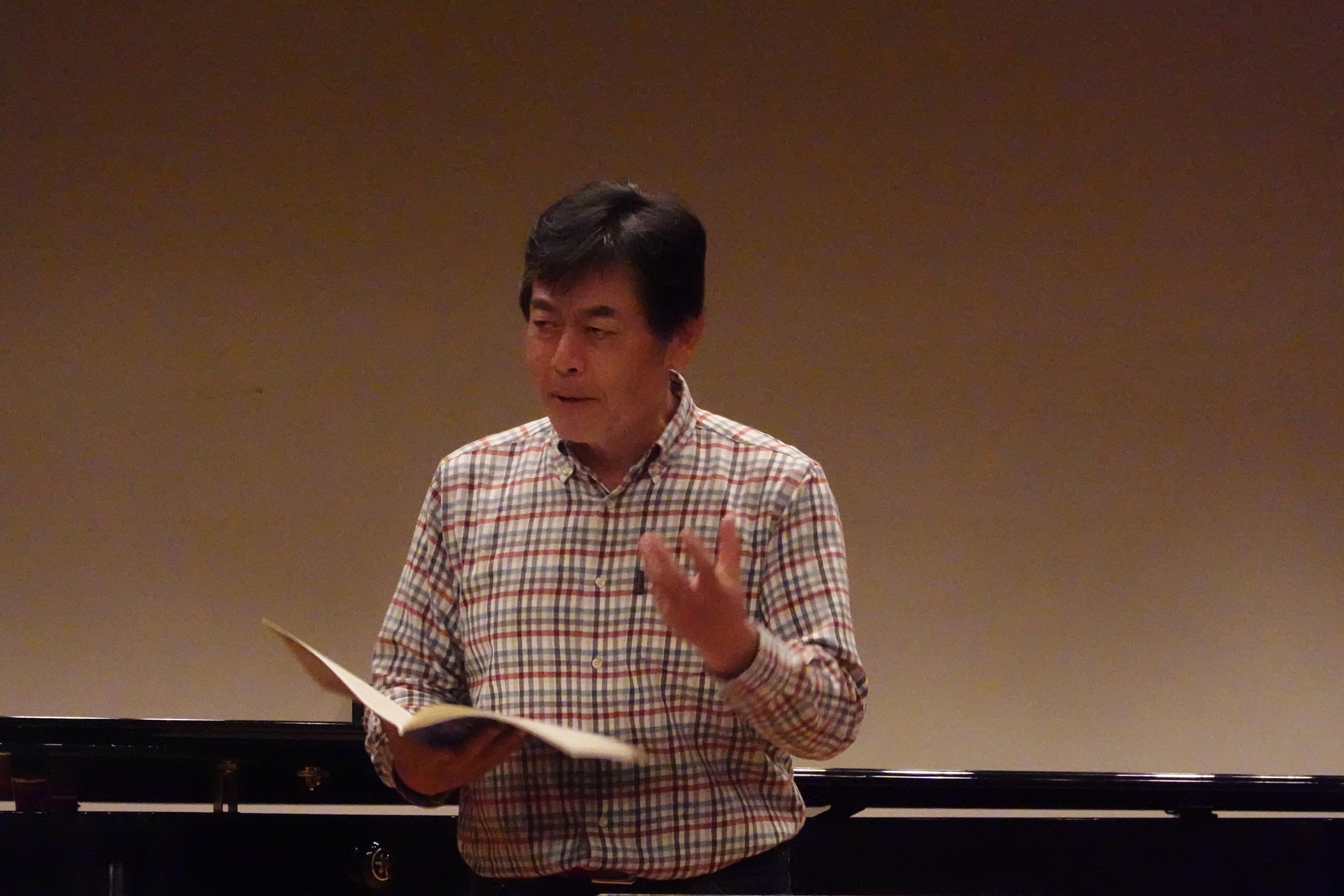 今日の練習は、前回の山本俊之先生のご指導内容の確認。柳田先生の楽譜への書き込みと記憶をたどりながらの練習となりました。(表情が厳しい!?)