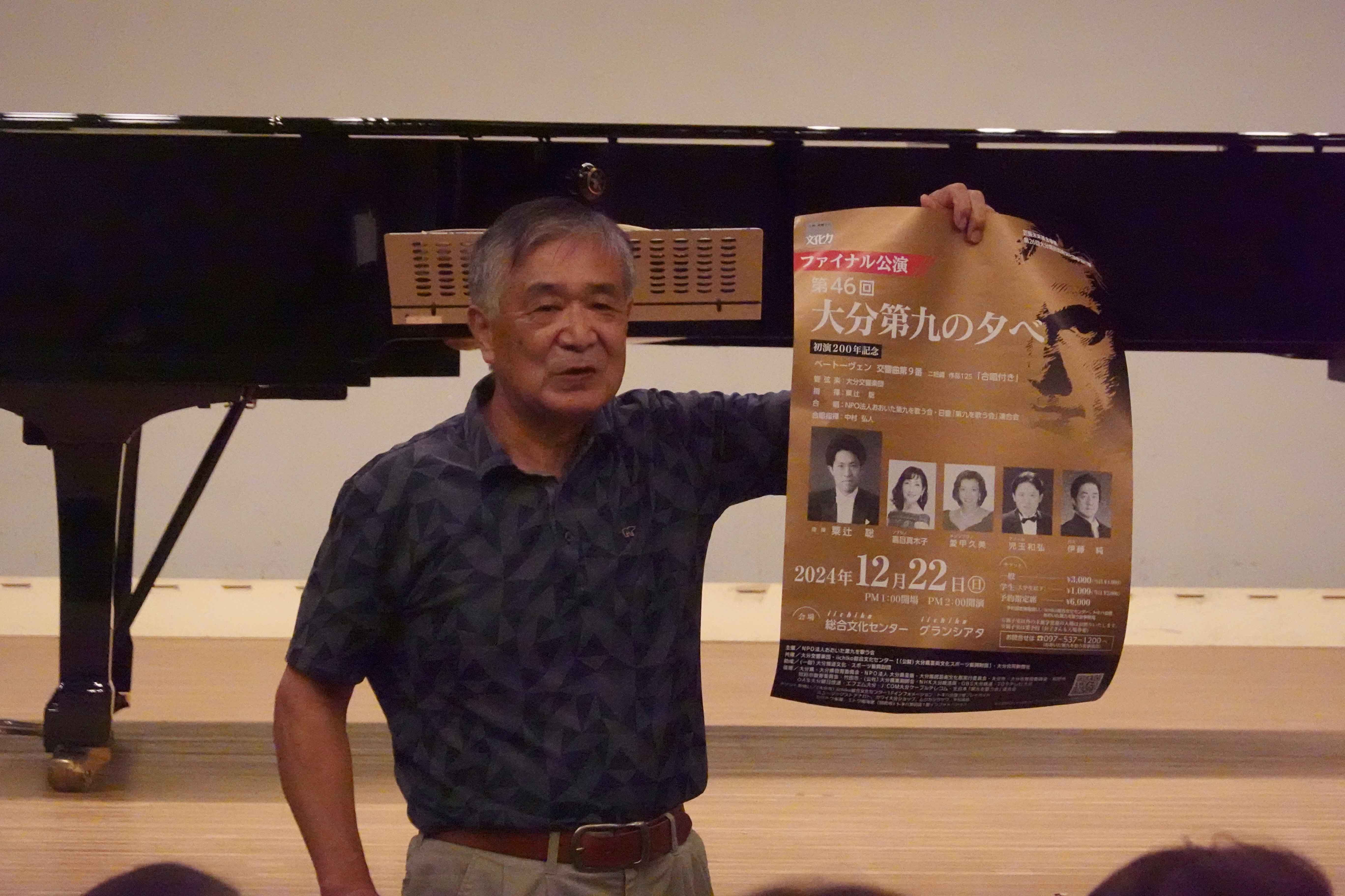 練習の最後に、「大分第九の夕べ」の紹介がありました。12月22日に行われる公演はファイナル公演となります。