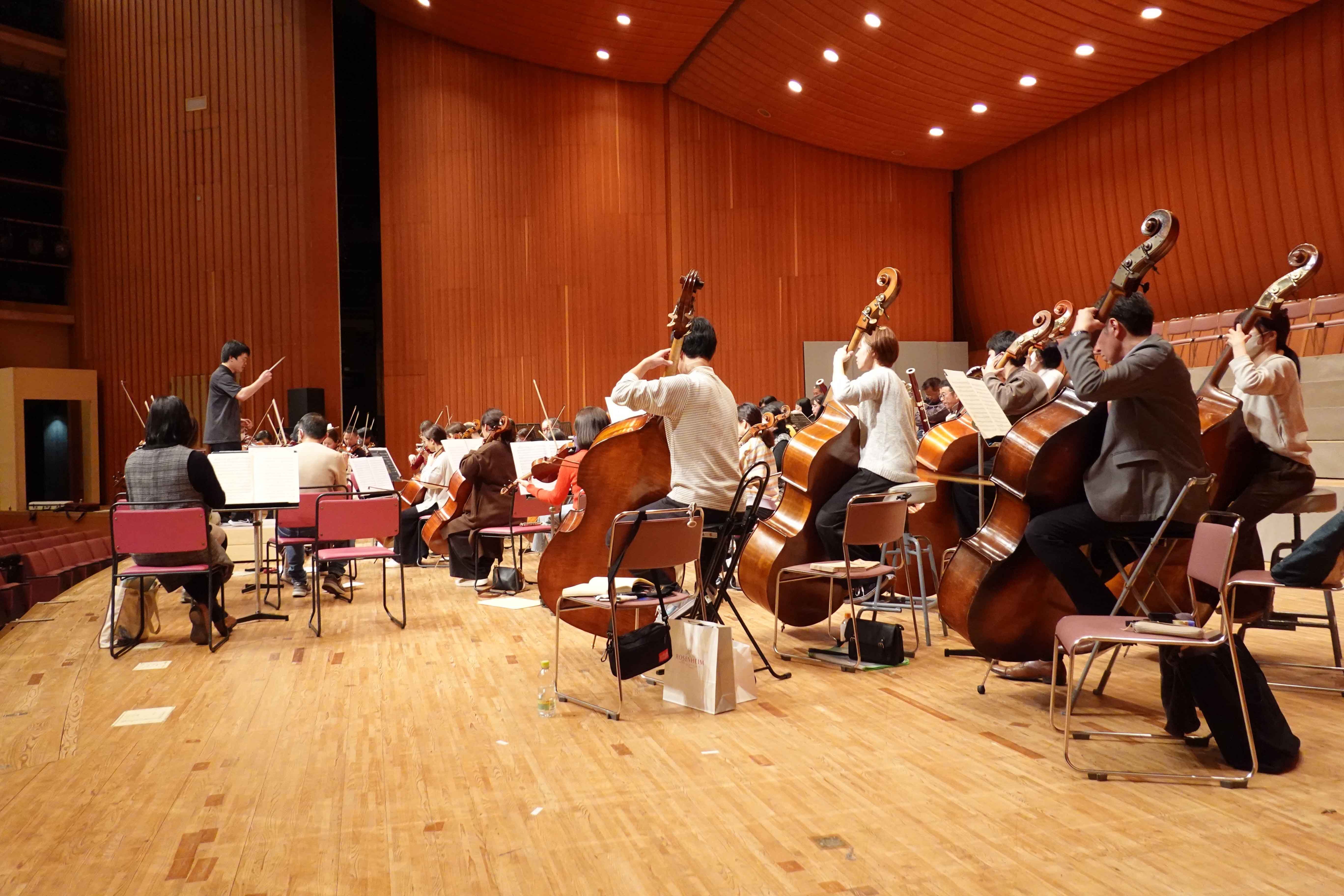 私たちの練習終了後、舞台両脇に設置していたマイクを取りにいったところ、延フィルの練習はまだ続いていました。