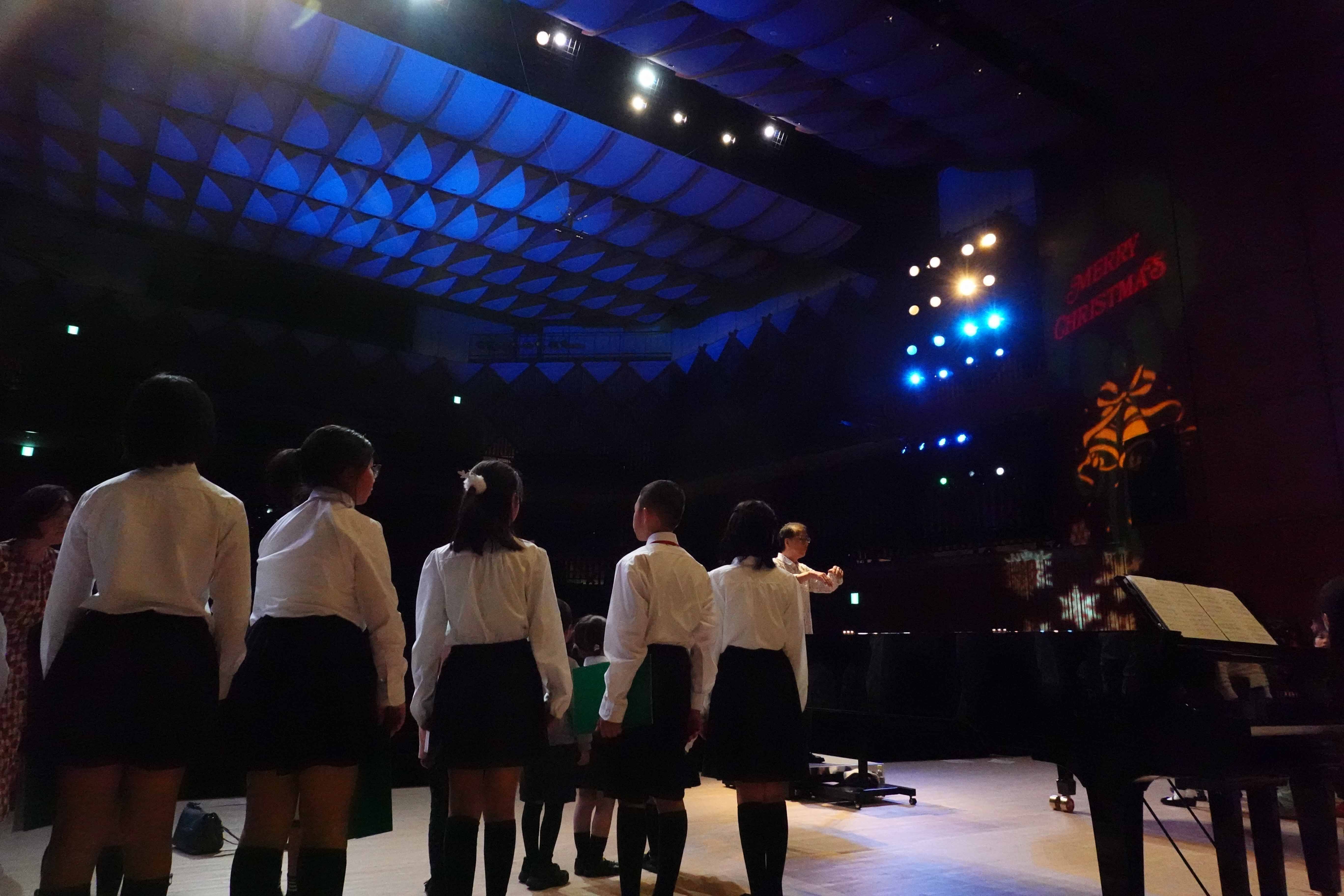 アンコール曲の「聖夜」のゲネプロの時には、客席の照明が落とされ、クリスマスの雰囲気を盛り立てる照明が壁面を照らします。